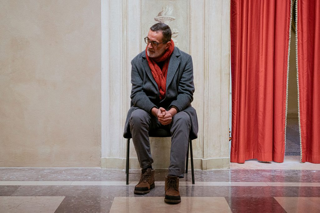 Nella performance Bologna, February 2023, per chi l’avesse vista Tolj sta svestito nello spazio della Sala Urbana in attesa che qualcosa succeda, che si renda manifesta una relazione. Nelle sue orecchie la canzone Bella ciao, una delle prime cose che ha riconosciuto del mondo dopo il risveglio seguito all’ictus. Poi quella musica diventa esplicita, presente, a indicare la presenza di un interlocutore, di un nuovo possibile dialogo o di una rinascita. Pur nel suo peso insostenibile, la vita è una sfida tragica che merita di essere accettata.