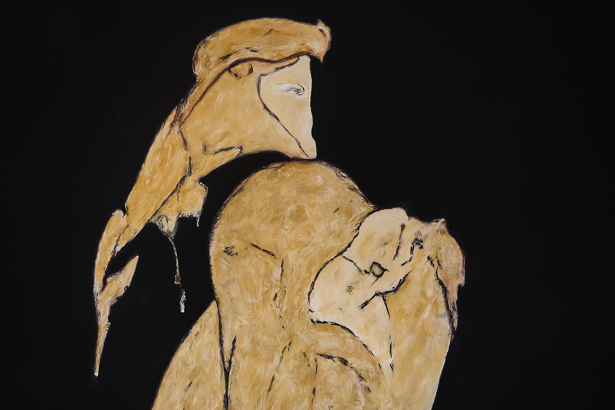 Al centro dello spazio emerge la figura del Principe, alter ego e icona ricorrente dell’artista. Nottambulo per definizione – colui che abita la soglia tra visibile e invisibile – il Principe presidia simbolicamente due delle quattro porte, assumendo così una funzione liminale: è il pensiero che veglia, che attraversa il tempo senza appartenergli.