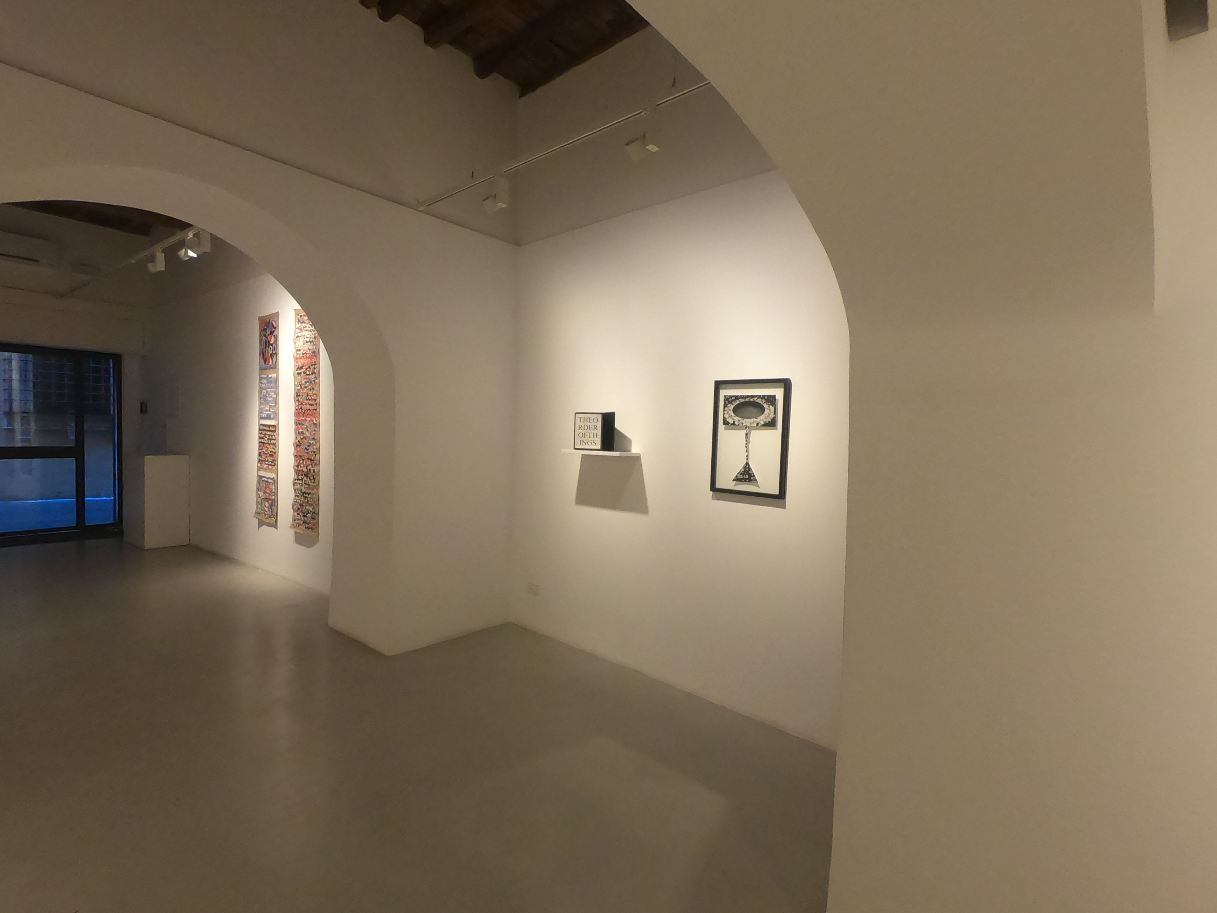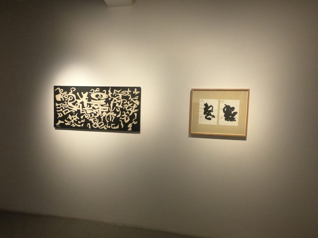 Le due calligrafie giapponesi su carta di riso di Alighiero Boetti rimandano allo shodō, la “via della scrittura” e, dunque, al clima estetico e meditativo del Buddhismo Zen. Qui il segno, nella sua semplicità e bellezza, viene esaltato e, in un certo senso, generato, dalla candida vacuità della superficie fibrosa.