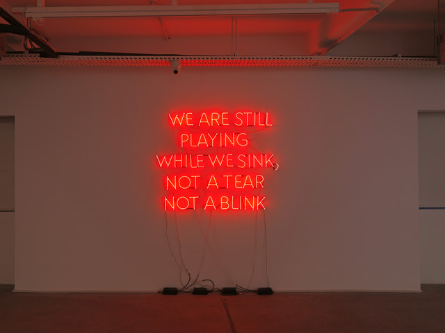 Daniele Sigalot, We are still playing while we sink (2025), scritta al neon. Anna Laudel Gallery, Istanbul