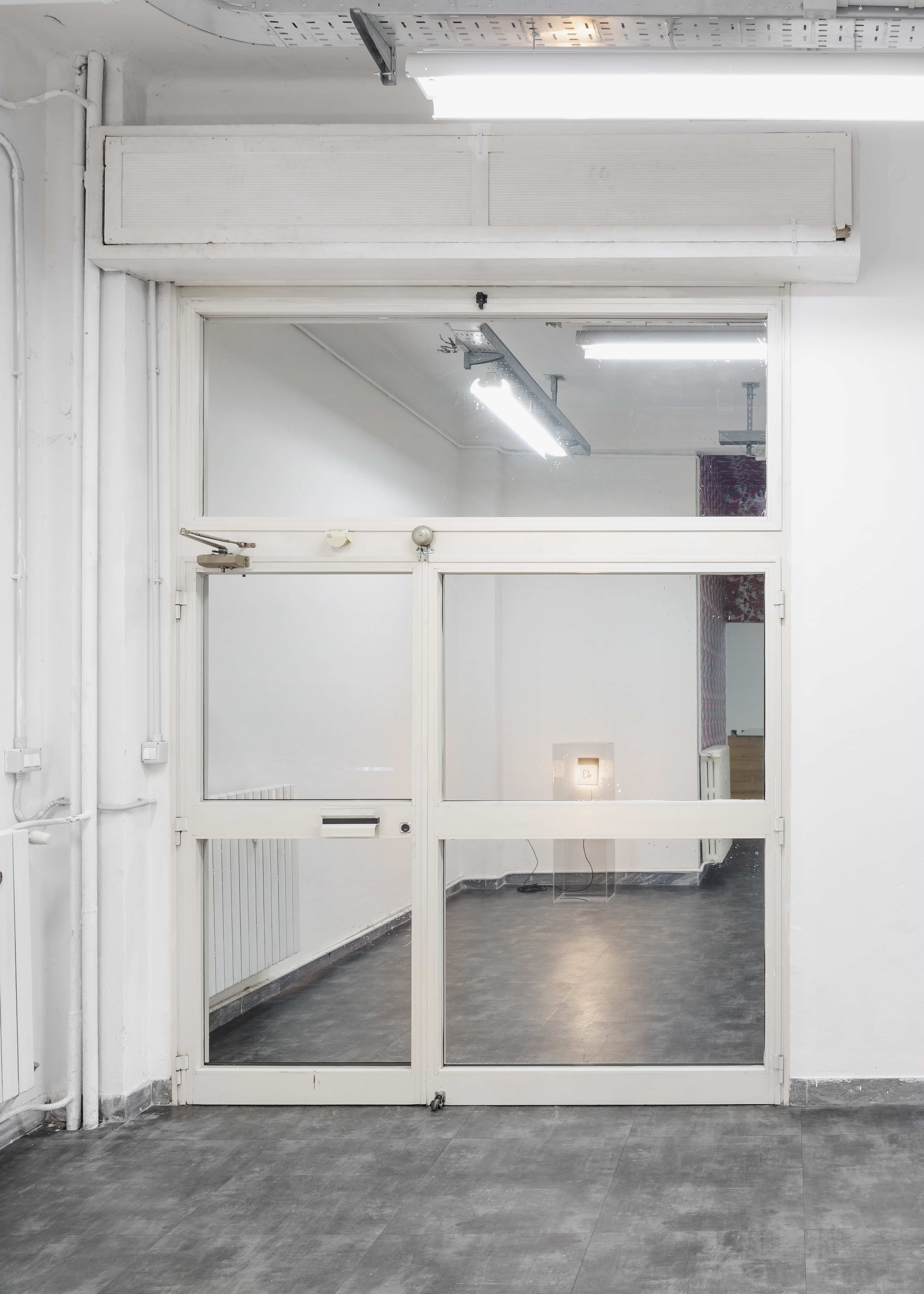 Varcata la soglia e chiusa la porta alle spalle ho immediatamente percepito una sensazione di confortante privacy dovuta alla certezza di essere protetta da occhi indiscreti. Le ampie vetrine della galleria sono infatti rivestite con una pellicola a specchio utilizzata solitamente in non luoghi quali banche, aeroporti e uffici pubblici, che impedisce ai passanti di sbirciare all’interno. Tracciando una linea di netta demarcazione tra pubblico e privato, questo asettico elemento architettonico influisce sulla percezione e aumenta l’aspetto immersivo.