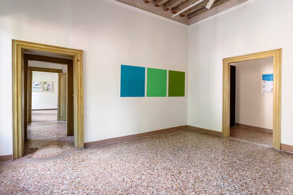 Lungo il percorso espositivo l’artista si emancipa progressivamente dal modello. Le opere sono disposte secondo un ordine cronologico che riflette un processo di graduale sottrazione: la pittura diventa autonoma, si svincola dal referente originario e prende una direzione interiore. Le componenti figurative si rarefanno fino a scomparire, lasciando spazio a campiture cromatiche monocrome nate come «campionature di colore», tentativi di «avvicinare le tinte inarrivabili di Giorgione».