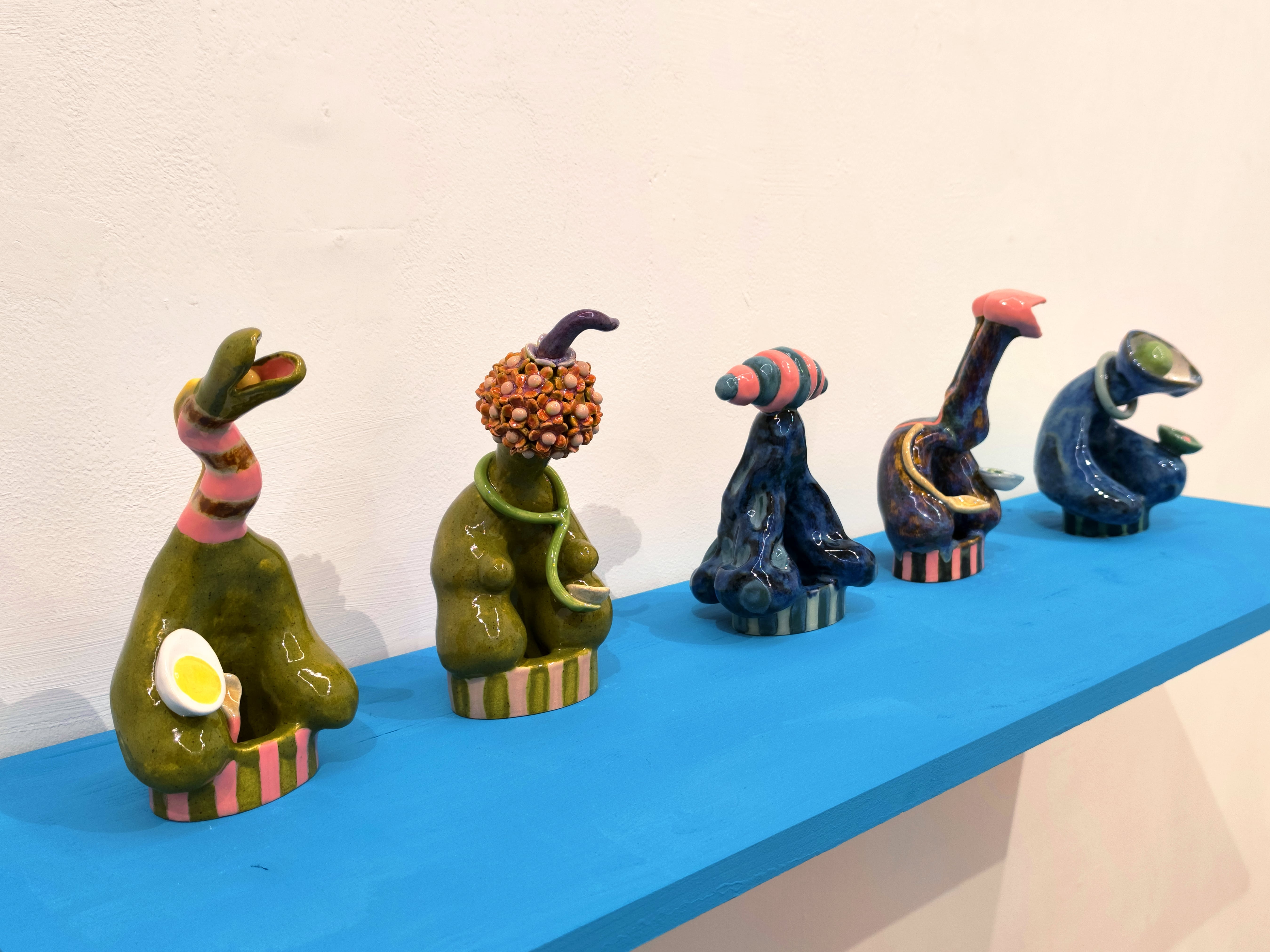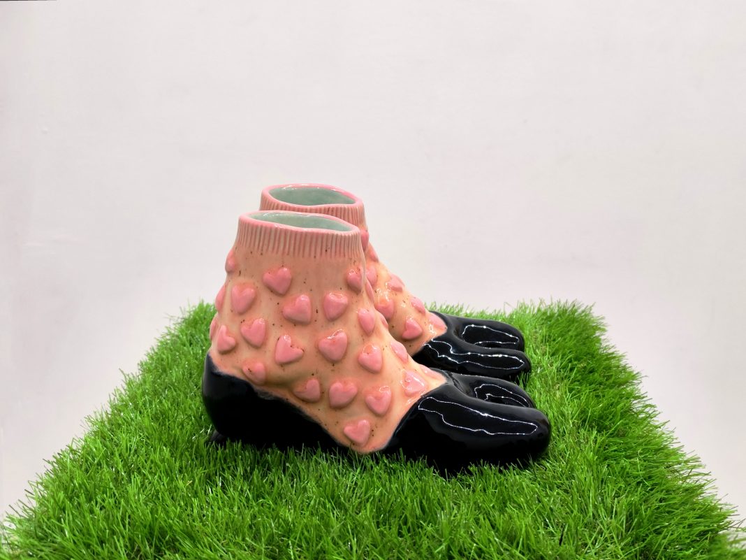 Holly Stevenson (Norfolk, Regno Unito, 1975) è nota per le sue assurde e colorate sculture in ceramica a forma di oggetti ed elementi familiari, trasmutati in oggetti bizzarri e stranianti. Il suo lavoro, perturbante nel senso freudiano del termine, è una sofisticata rielaborazione di suggestioni surrealiste e psicanalitiche. Le sue opere sono pervase dal senso dell’inquietante ed esplorano temi come la trasformazione, l’identità e l’inconscio. Nell’opera di Stevenson, inoltre, non mancano mai elementi che rimandano alla dimensione femminile, come fiori, uova, seni o tacchi.