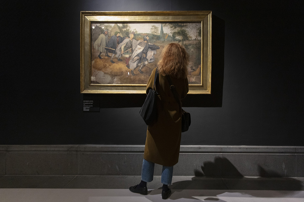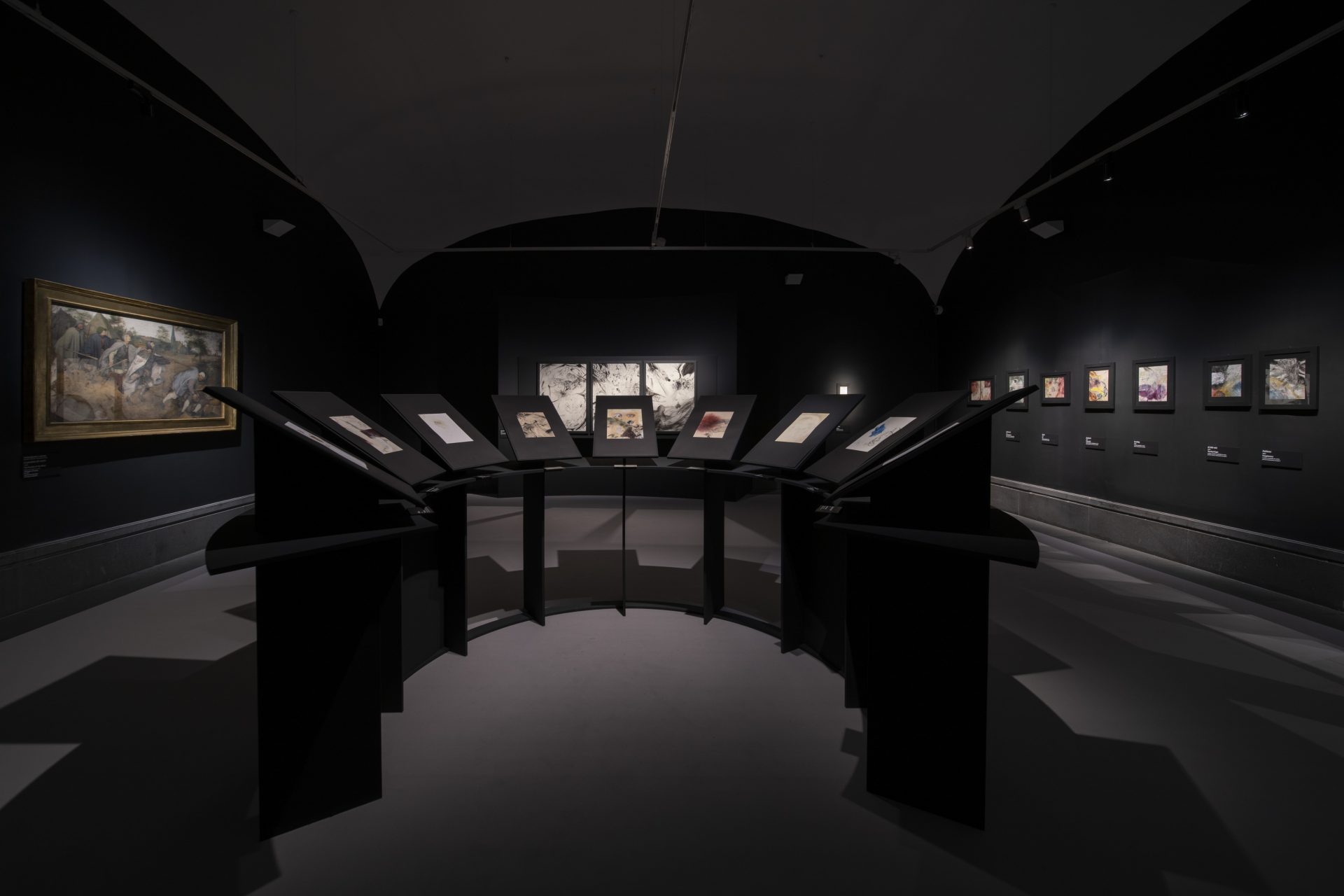 «Bianco e nero creano immaginari estranei alla realtà», sottolinea il direttore del Museo, Sylvain Bellenger. Così il trittico di Parabola (2021), vere e proprie copertine di antiche riviste di fantascienza, segni di spazi infiniti e perduti, come inconclusi e smisurati possono essere i percorsi interiori di ognuno di noi. Così la Parabola dei Ciechi di Pieter Bruegel il Vecchio, posto in dialogo con le opere del giovane artista napoletano, più che da ispirazione o dote ideologica, funge da pietistico ammonimento, da dolce richiamo a un’umanità disperante, goffa ma sognante. Che insiste e non recede dai propri folli proponimenti.
