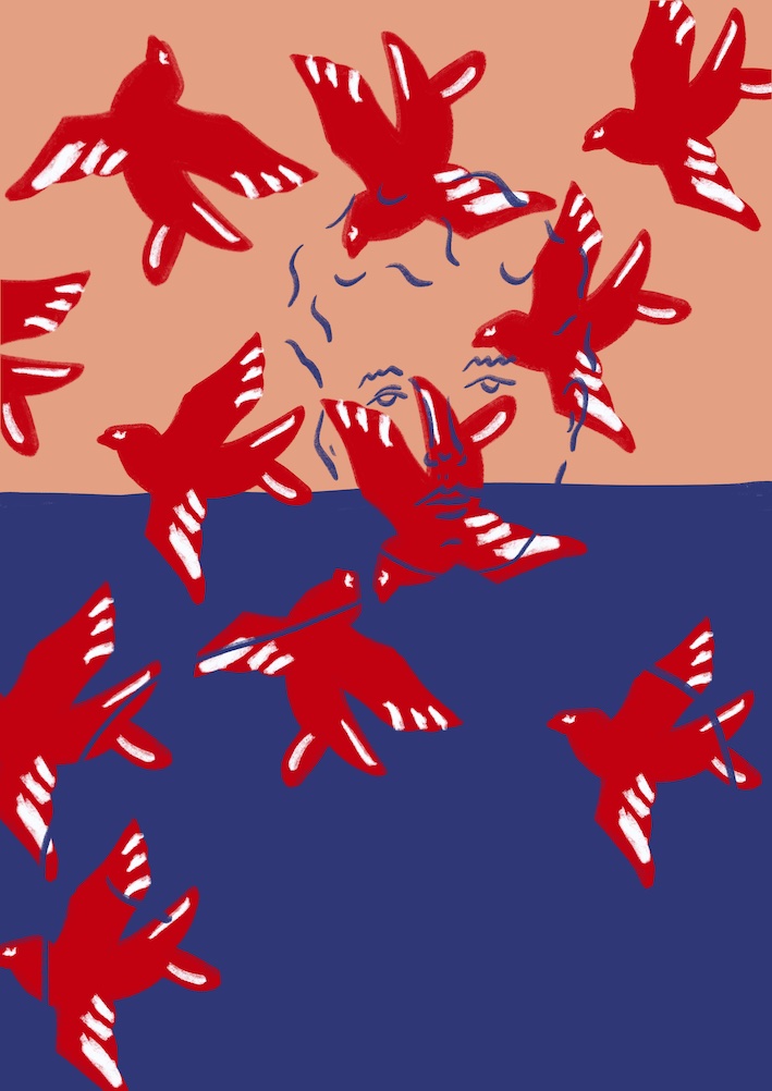 Il riferimento ad una nota canzone del gruppo britannico indie – rock si fa chiaro nella lettura delle opere presenti nella Lounge del Gallery: ad accogliere il visitatore è la serie dei segni zodiacali realizzata appositamente per l’occasione, nella quale si stagliano figure umane solo abbozzate ed immerse in campate di colore vermiglio e blu di reminiscenza kleiniana. Il dualismo tra le due tonalità, che riprende i colori del sangue arterioso e venoso, nonché la matita utilizzata nei contesti scolastici, è effimero solo all’apparenza, in quanto ad essere interpellati nella lettura dell’opera vi sono numerosi riferimenti alla storia dell’arte non solo occidentale, che spaziano dalla reinterpretazione di elementi figurativi come le figure dello zodiaco tanto in voga in epoca rinascimentale, fino alle sperimentazioni coloristiche degli anni sessanta e al segno grafico aperto della tradizione giapponese. Rispetto all’immaginario a cui attinge, l’artista racconta: «Le mie influenze creative si allargano su di un vasto spettro di contaminazioni artistiche, infatti non mi limito all’arte visiva bensì traggo numerosi spunti dal cinema, dalla letteratura e dalla musica come appunto si diceva. Sono un uomo del Novecento che tenta di rovesciare stilemi e comportamenti del secolo scorso in quello attuale, le mie influenze primarie sono quindi le grandi avanguardie passate. Gauguin, Matisse, e Cocteau si fondono con Pennac, Tondelli, Calvino e Conrad passando per Tarkovskij e New Order. Tutto viaggia su di una linea temporale squisitamente postmoderna. Si tratta del grande, meraviglioso inganno della pratica pittorica che lascia entrare qualsiasi cosa al suo interno, sia esso un suono o una parola scritta o una pennellata vibrante. Questi sono i miei monumenti».