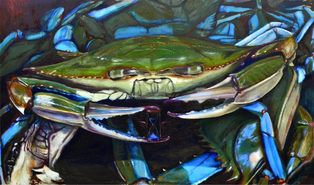 I due piani seguenti sembrano essere stati concepiti come un rito di passaggio, una catarsi. Essi continuano l’esposizione dove l’attenzione viene dedicata all’acqua, alla sua forza nell’adattabilità, nel suo plasmarsi, quasi come rito di transizione, proprio come avviene nel Purgatorio. Qui si ritrovano opere di Pretolani come Akuafan (2020), in cui echi di drappeggi damascati dei vestiti dei grandi dogi sembrano riecheggiare nei moti ondosi sulla tela, o Tempus Fugit! Fio mio (2023) di Braida, dove un granchio dai colori vivaci regge una clessidra, a ricordare la caducità della vita.