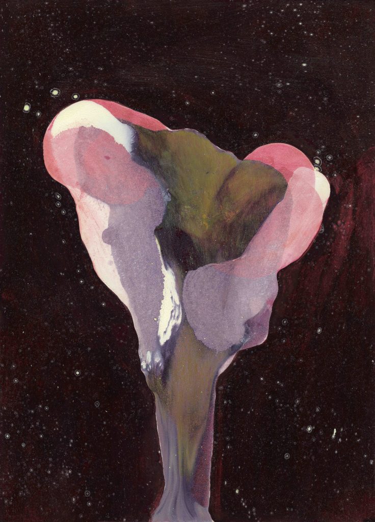 Ancora una volta ci spinge a una nuova avventura. A un nuovo percorso da osservare: tracce bianche che sembrano fatte di spray; il fucsia e il rosa che ricorrono; la figura che riemerge qua e la; giochi di sparizioni o accumulazioni; carte millimetrate; fantasmi del passato; scheletri e simbologie antiche, retrò e cupe; lievi tracce di matita; piccoli segni di natura; fiorellini rosa, azzurri e rossi. Ispirazioni riuscite che non cessano mai di stupire, analizzare, imparare.