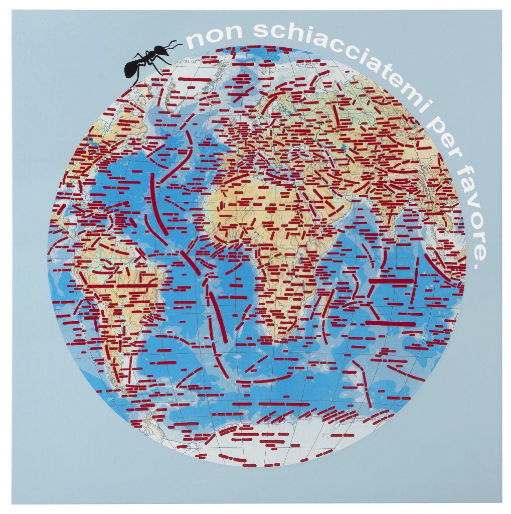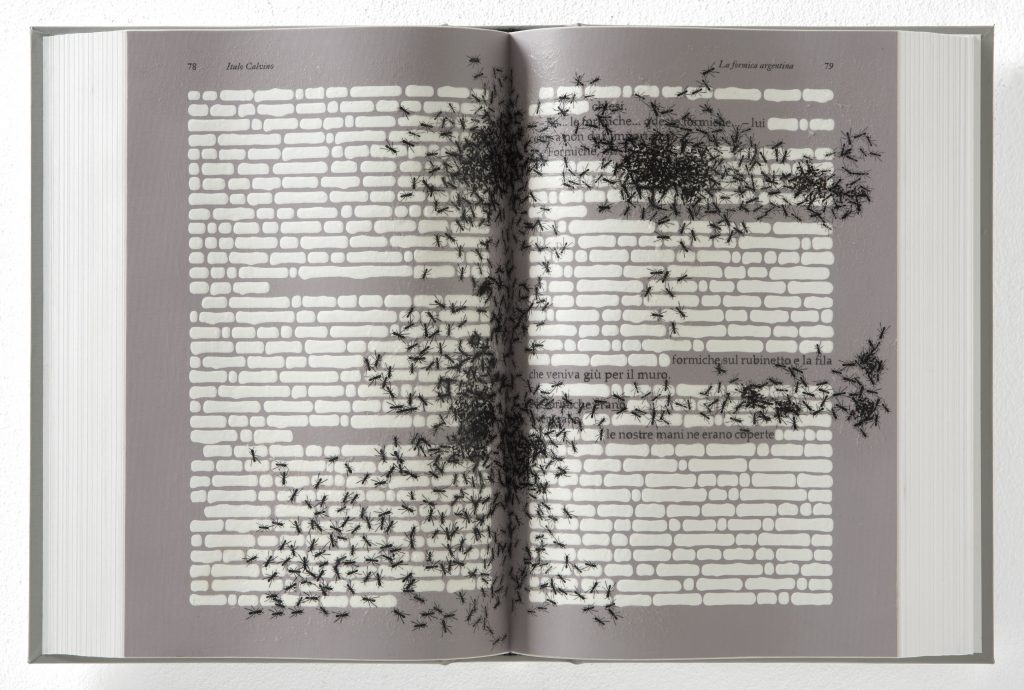 Nel lavoro di Isgrò le formiche sono il punto di arrivo di una lunga gestazione formale e concettuale che ha inizio con le cancellature, cioè con quella procedura che gli artisti, da Robert Rauschenberg in poi, hanno praticato come paradossale omaggio a un testo o a un’esperienza avvertite come imprescindibili. Come ci sentiremmo, infatti, se le carte geografiche non parlassero più con i nomi dei luoghi, se i poemi e miti fossero lontani fantasmi sbiaditi? Formiche e cancellature mettono in risalto ciò che è assolutamente essenziale, a volte esponendolo, a volte negandolo alla vista.