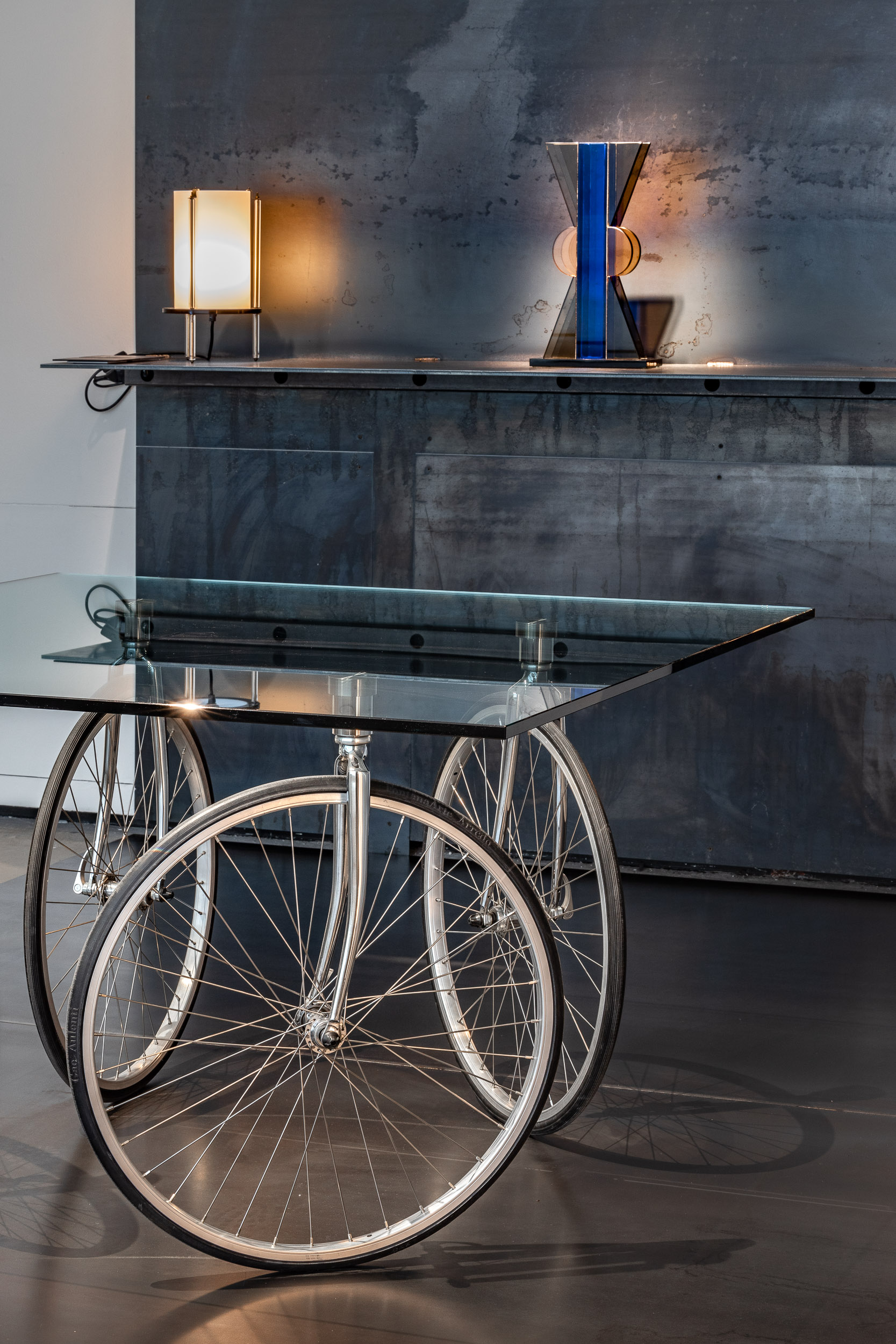 «Attraverso 85 pezzi tra i più eccezionali della produzione di FontanaArte, la mostra si con- centra sulle possibilità poetiche del vetro in lastre, un materiale industriale lavorato da tanti designer e artisti che hanno collaborato con l’azienda milanese nel corso della sua storia.