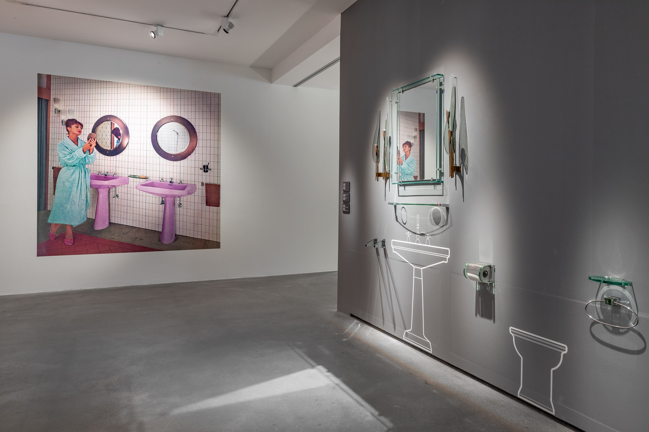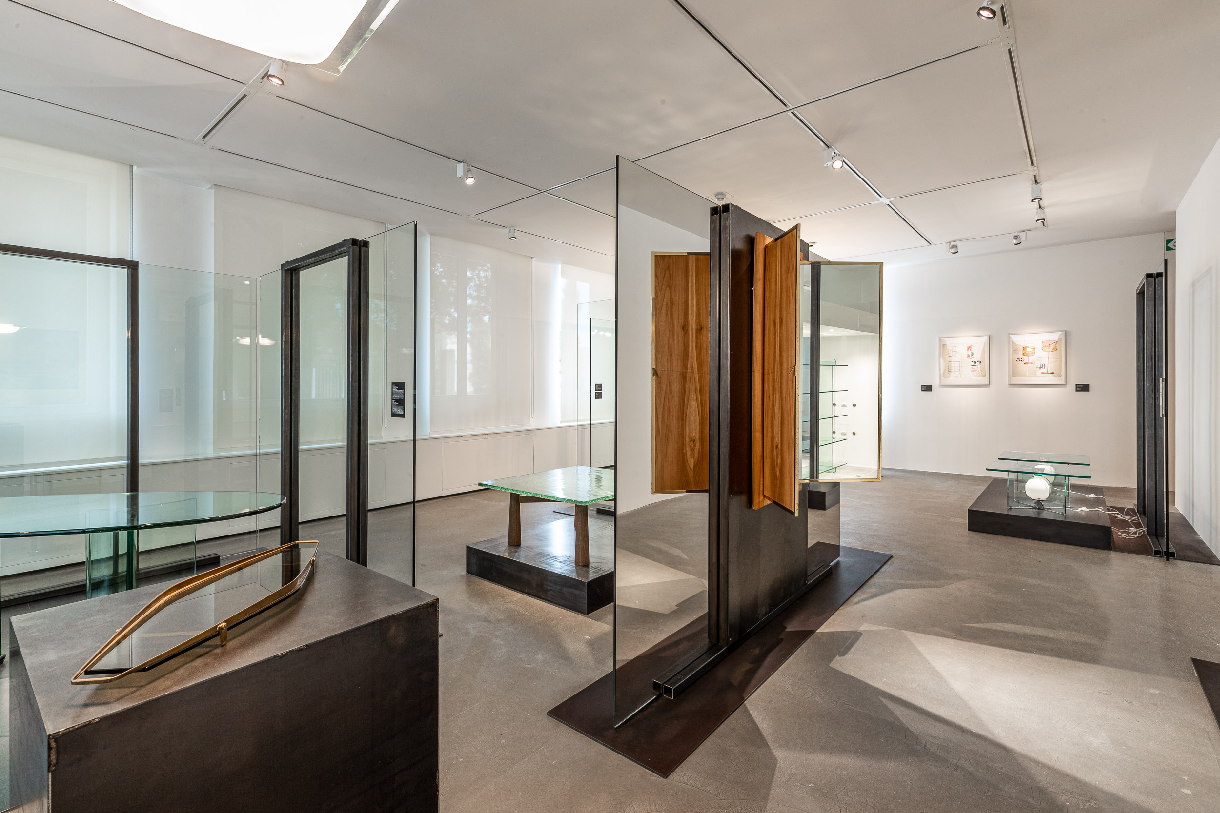 La mostra, che sviluppa un percorso in cui ogni sala è focalizzata su un approfondimento specifico per ognuno dei designer, culmina in una suite arredata nello stile FontanaArte per rievocare una dimora fatta di interni in vetro. L’allestimento è realizzato su progetto dell’ar- chitetto Massimiliano Locatelli.