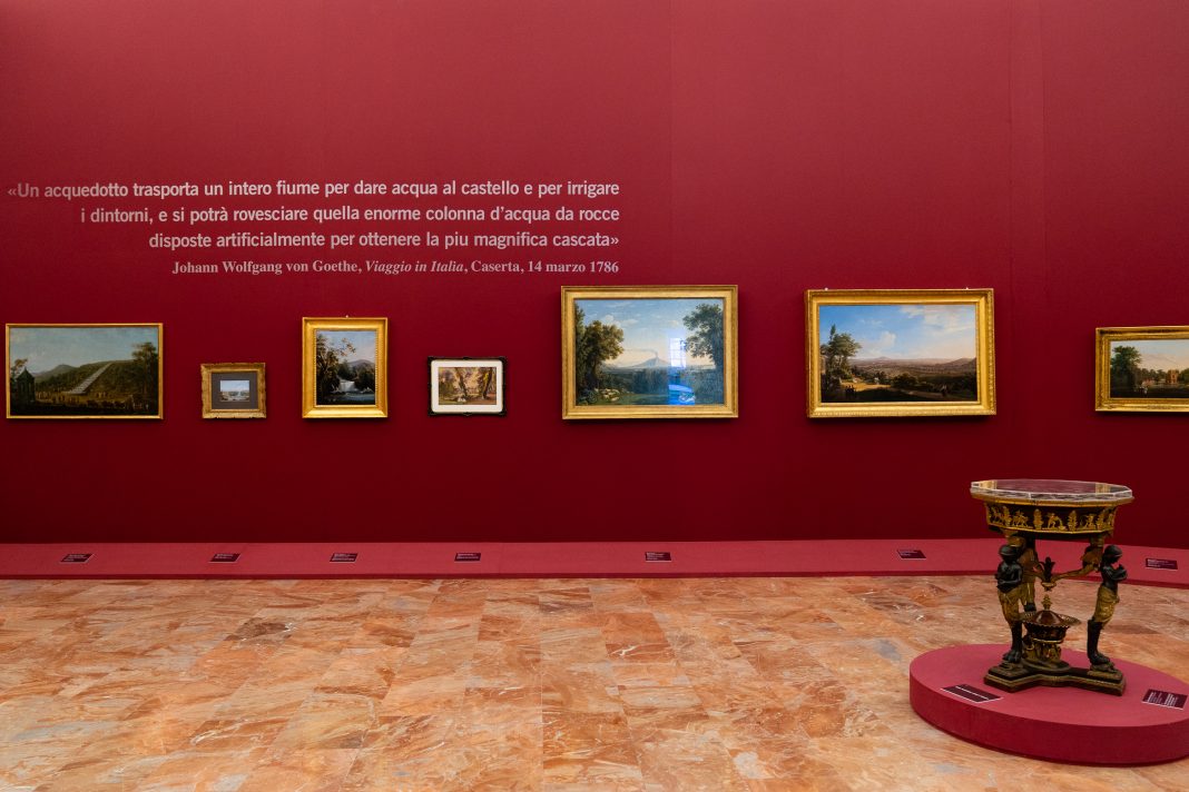 In un confronto tra rappresentazione, immagine e prospettiva reale, le opere scandiscono le grandi sale dell’Appartamento della Regina affacciate sul meraviglioso Parco Reale, con la scenografica via d’acqua, in un allestimento suggestivo ideato da Lucio Turchetta con Vincenzo De Luce. Prestigiosa la lista dei prestiti, dai Musei del Prado e Thyssen-Bornemisza di Madrid, al Museo di Versailles, fino al Museo di Capodimonte, alle Gallerie dell’Accademia di Venezia, alla Galleria degli Uffizi e Palazzo Pitti a Firenze, al Museo di Roma, oltre a collezioni private biblioteche e altri istituti pubblici, come gli Orti botanici di Napoli e Portici, a sottolineare non solo profondità organizzativa dell’esposizione ma anche l’amplissima diffusione del genere, una linea rossa che unisce luoghi distanti.