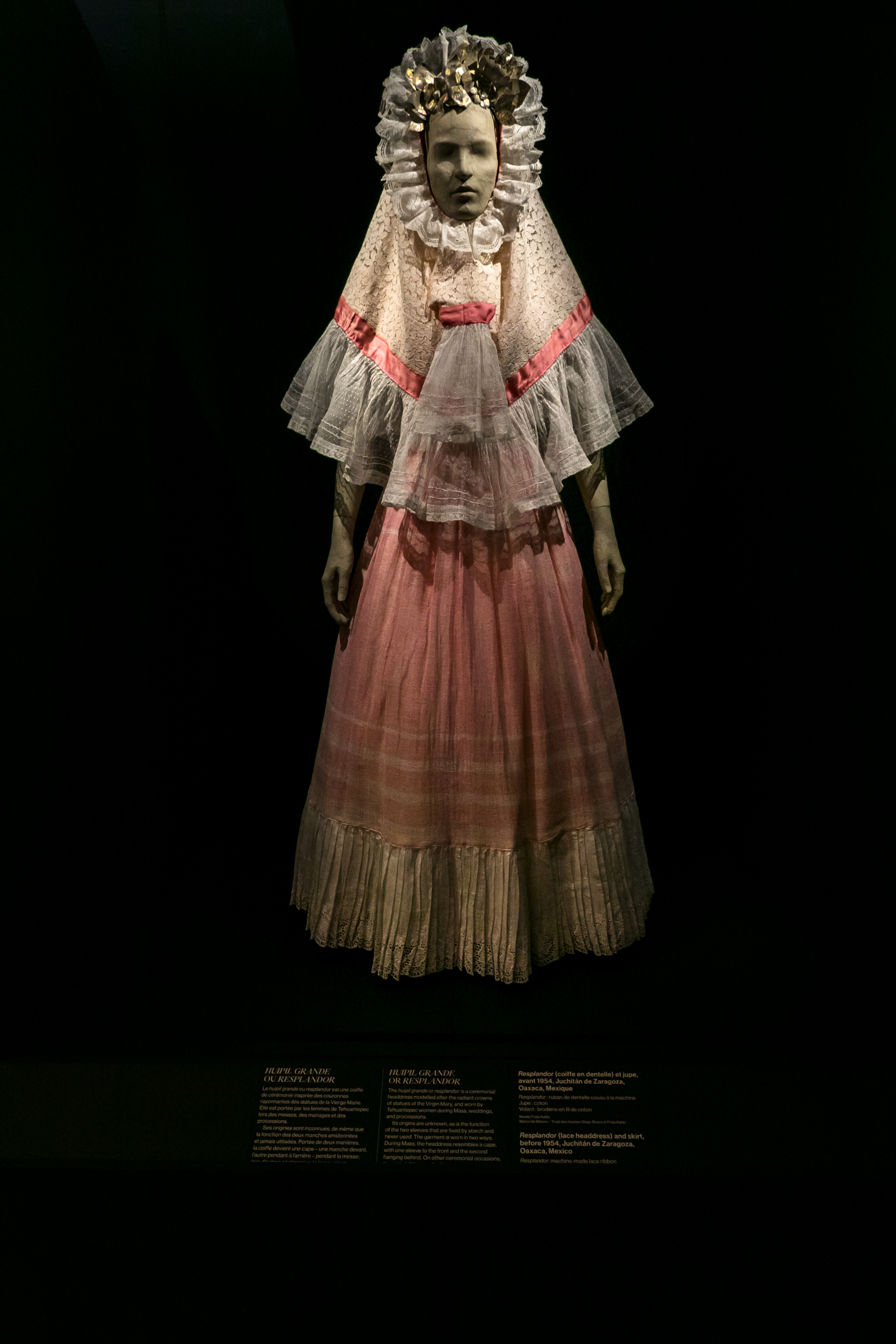 Monociglio color ebano, capelli corvini incornati da un resplandor (il tradizionale copricapo Tehuantepec di pizzo inamidato) o da fiori freschi, un rebozo, uno scialle, che copre le spalle e il tradizionale abbigliamento tehuana, sono i tratti distintivi di quell’icona culturale chiamata Frida Kahlo (Coyoacan, 1907-1954). Il museo parigino della moda di Palais Galliera, accoglie “Frida Kahlo, au-delà des apparences”, una mostra che riunisce circa 200 creazioni e oggetti come abiti, accessori, protesi mediche, cosmetici o farmaci, visitabile fino al 5 marzo 2023.