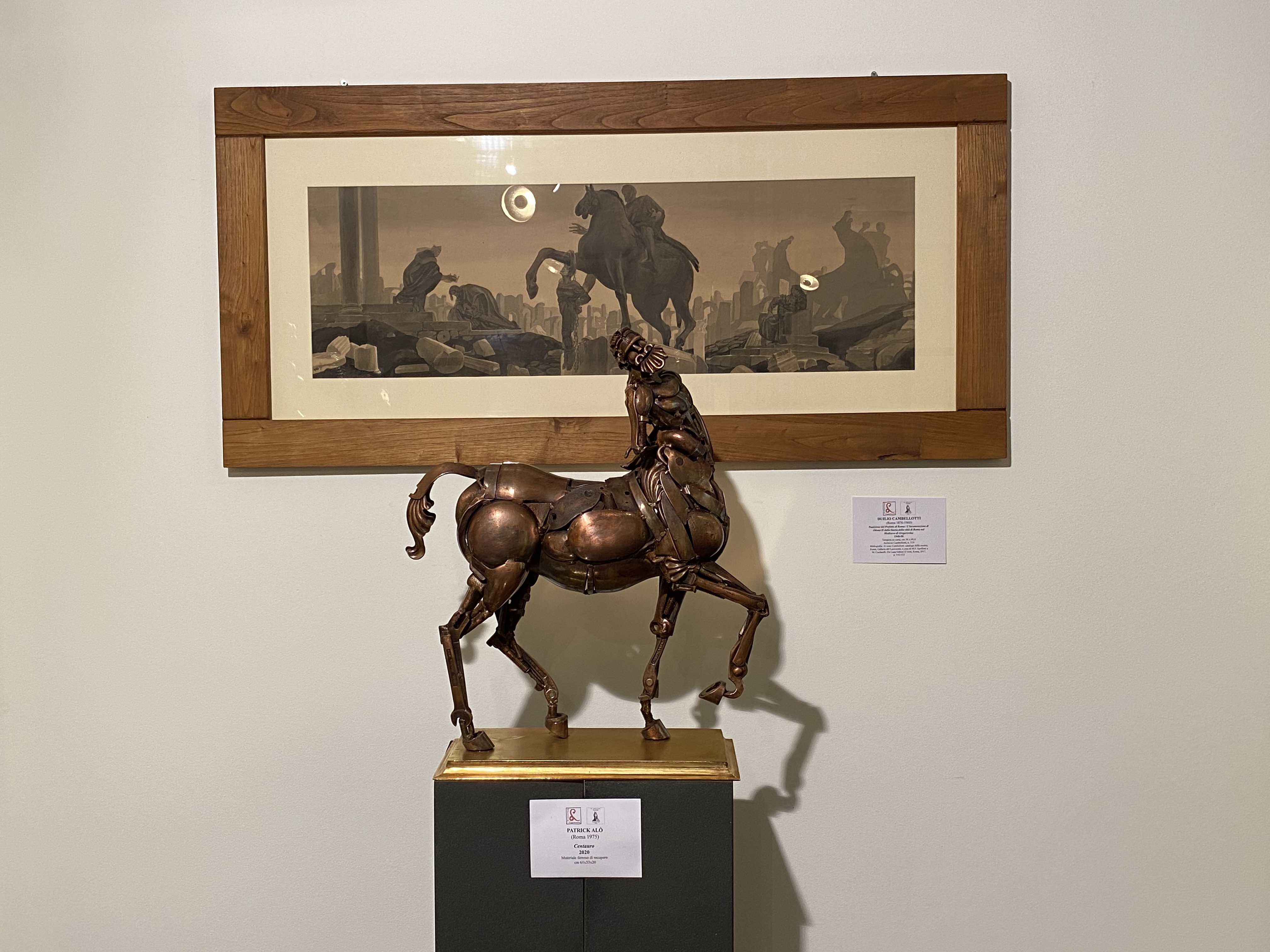 «Difficile scelta, ma tra tante la scultura bronzea di Francesco Messina che ritrae Indro Montanelli giovane, bello come un ritratto romano antico della repubblica, i commoventi ricami di Maria Savinio che ripetono alcune delle più incantevoli opere di suo marito Alberto, di Patrick Alò non si può mancare il Laocoonte che è anche l’eroe protettore della nostra galleria».