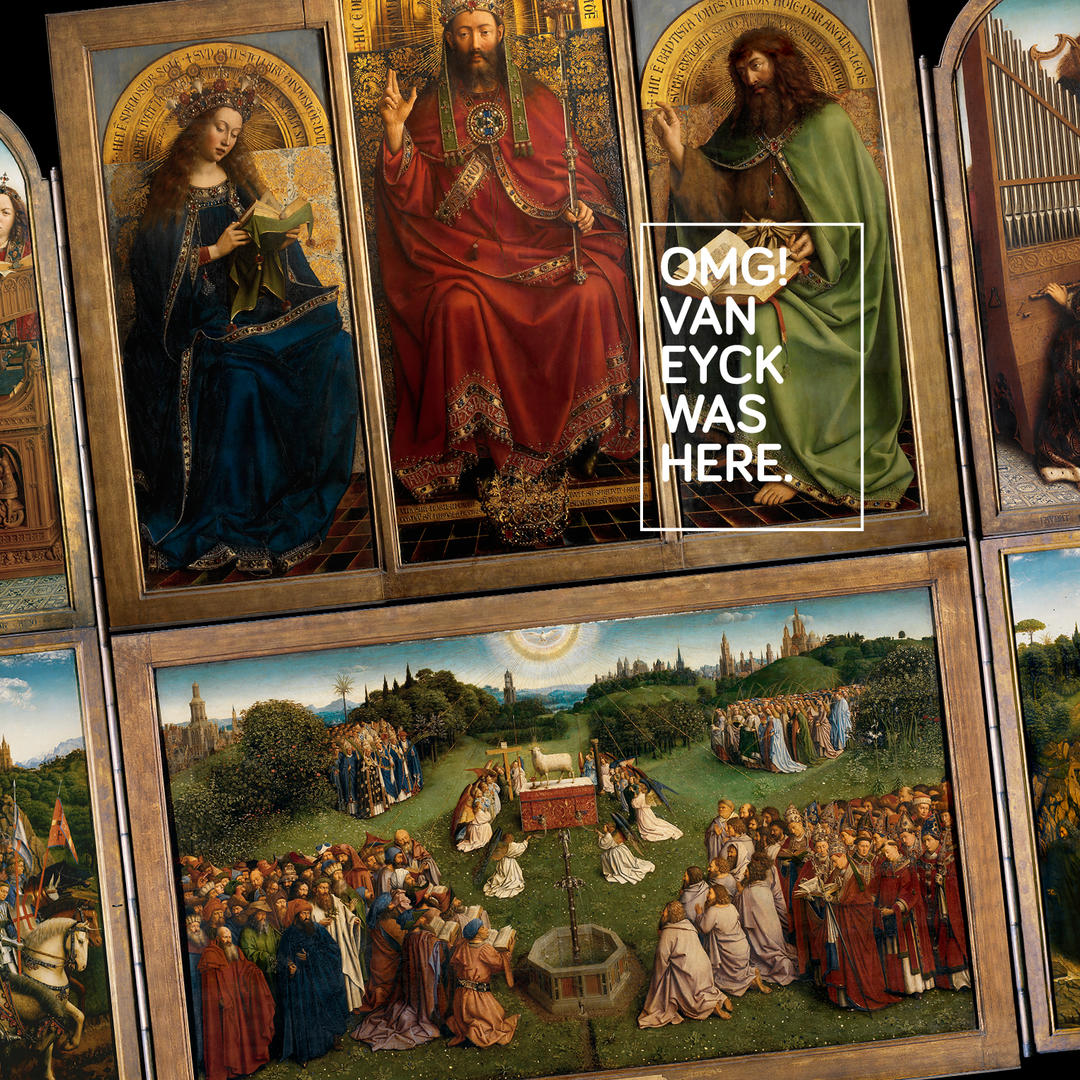 L’intero progetto porta il nome di OMG! Van Eyck was here – ammiccando simpaticamente a Johannes de Eyck fuit hic, la firma che il pittore mise sotto lo specchio nella celebre stanza dei Coniugi Arnolfini, risultando tra i primi artisti a uscire orgogliosamente dall’anonimato. Il termine si riferisce anche all’importanza della presenza di Van Eyck nella città di Gent. D’altronde Gent divenne uno dei centri culturali più importanti d’Europa, anche grazie alla presenza di Van Eyck e del suo straordinario polittico, meta obbligatoria per tutti gli amanti dell’arte.