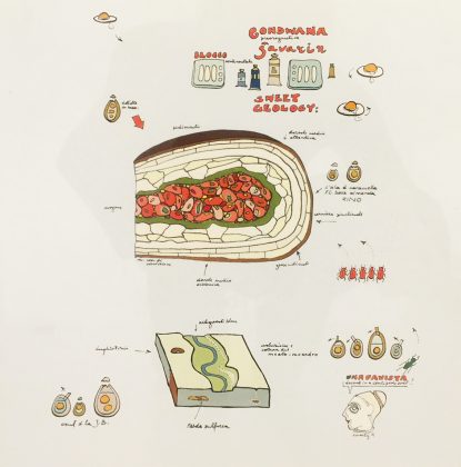 Variamente trattata, la classe dei volatili è presente nella produzione artistica di Cornell così come in quella di Dion (Les Oiseaux, 2020). Invece, la terra è protagonista in diversi lavori di Baruchello, Sweet Geology (1979) ne è un esempio. Nell’interfacciarsi con la storia della cultura, questi artisti hanno tracciato il sentiero per nuove idee mettendo in discussione le ideologie dominanti. A volte con uno spirito pseudo-ludico ma al contempo impegnato, un approccio a tratti dadaista e sempre con raffinatezza Cornell, Baruchello e Dion hanno saputo rimodulare la memoria per una nuova conoscenza.