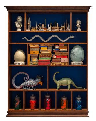 “Shadow boxes”, “memory boxes”, “poetic theatres”: così l’artista americano definiva i suoi assemblages in scatole rettangolari perlopiù in legno, di diverse dimensioni, col fronte in vetro. Oltre lo schermo trasparente un ephemera a raccontare la curiosità dell’artista – come curiosità dell’uomo – nei confronti del mondo, con riferimenti alla scienza, alla natura e alla spiritualità. Poi, Gianfranco Baruchello prima e Mark Dion dopo anche loro a creare realtà immaginifiche in scatola: E credeva che il metadone fosse vitamina B (1978), L’altra casa (1979) e Between Voltaire and Poe (2016). Tanto cara a questi artisti, quanto riconducibile alla loro produzione, questa modalità di assemblages con scatole e oggetti rende effettivi nuovi modi di catalogare, alternative possibili alle categorizzazioni preimpostate.