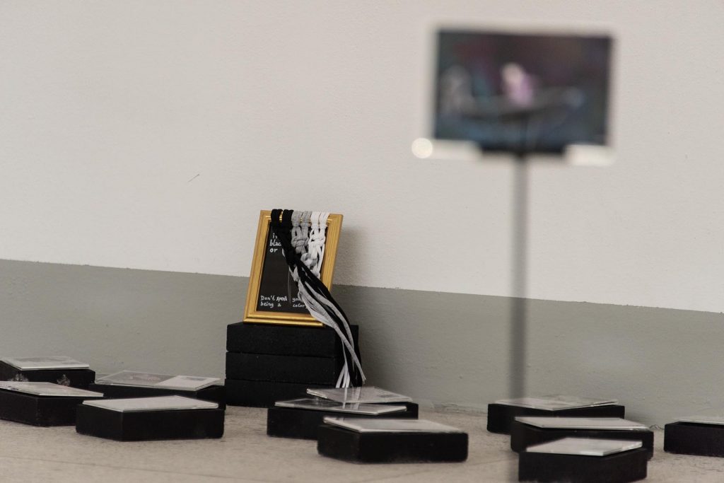 Assab One accoglie queste cartoline in un allestimento a pavimento che invita a muoversi tra loro e ad abbassarsi, quasi inchinandosi, per leggere più da vicino cosa le persone hanno restituito. «Fear on unknown. Lack of control. Over the edge. Yelling won’t help. Discrimination must stop. THIS IS NOT AN ACRONYM. IT’S A SELF FULFILLING PROPHECY», si legge su una.
