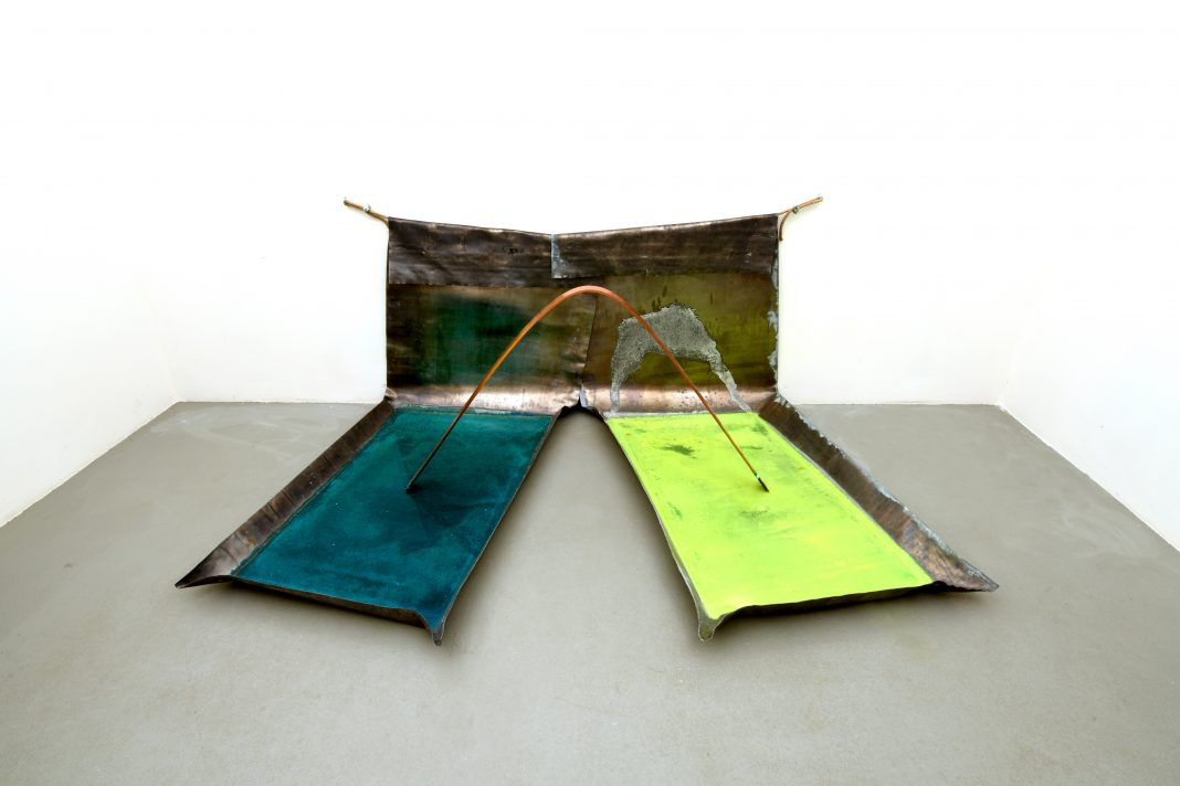 Gilberto Zorio, Piombi, 1968 2 fogli di piombo, solfato di rame, acido cloridrico, fluorosceina, barra di rame, corda 95 x 250 x 164 cm Courtesy dell’artista Ph Gino Di Paolo