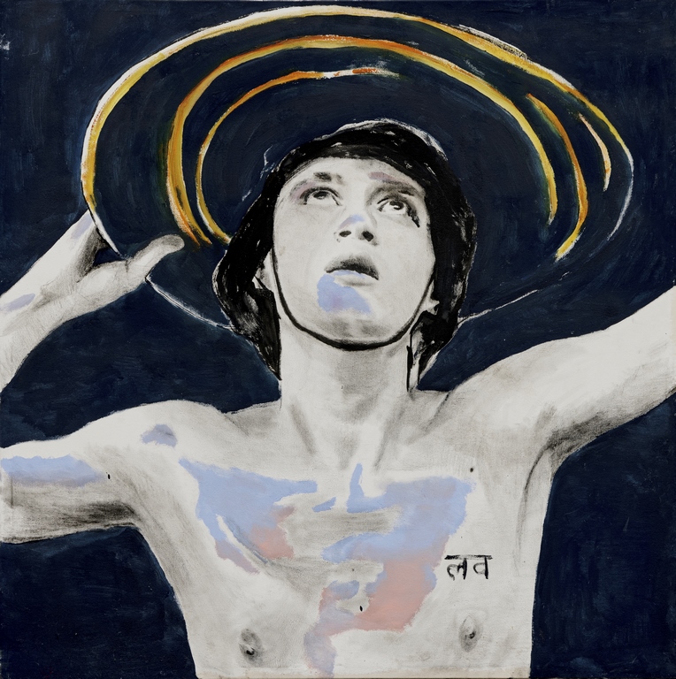 Non solo gli altri, ma anche chi prima di lui è stato artista viene coinvolto in questo confronto che supera il tempo. Come afferma Cristina Muccioli, nessun artista è orfano, tutti sono figli dei precedenti. Così ad aprire la mostra è lo scorcio mantegnesco del Pescatore di Uomini, un San Pietro che – secondo la lettura di Don Bellini -, disteso senza forza su uno specchio d’acqua, “a sua volta attende di essere ripescato”. Oltre a Mantegna, anche Caravaggio partecipa di questo continuo dialogo tra diverse interpretazioni ed epoche. Con Caravaggio Saltini ha in comune la volontà di creare un ponte con il contemporaneo, di prendere in causa il presente. E allora ecco che il Cristo deposto diventa un motociclista “con una tutina verde un po’ glam” e il casco, retto dal celebre motivo del braccio inerte. Sono anche queste memorie iconografiche, spiega Muccioli, che ci dimostrano che la pittura resiste, a differenza di quanto pensavano chi la dava per finita con il digitale, e che anche l’arte contemporanea è in grado di comunicare la spiritualità.