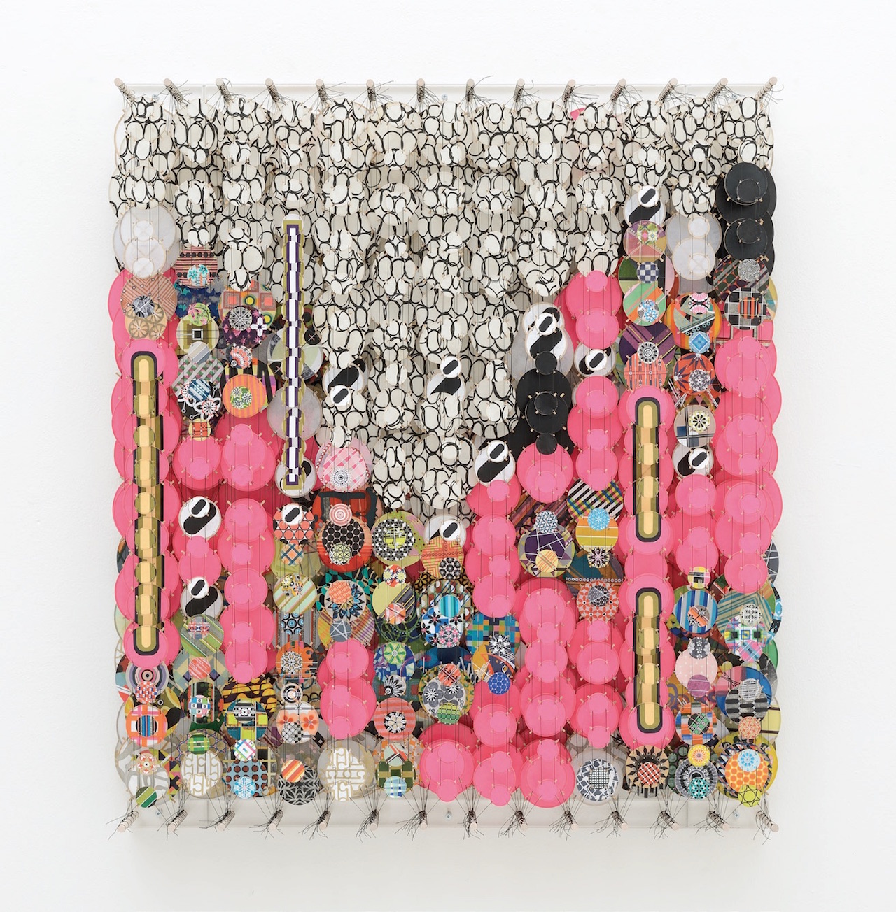 Queste piccole componenti hanno il loro giusto incastro come un puzzle: ogni tassello non può essere spostato e deve far parte di quel preciso posto, per offrire l’effetto della tridimensionalità e del movimento equilibrato. Come nell’intelaiatura cromatica digitale fatta di pixel, qui i colori sono incastonati e compongono un’unica struttura. Così, questo delicato ammasso di strati sottili, riunisce tradizione e modernità, rimandando sia alla natura che al mondo virtuale.