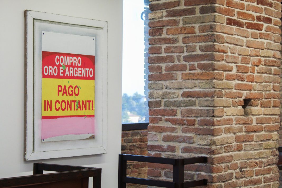 Raggiungendo infine l’osservatorio, il dialogo si apre al confronto. Se Cerutti volge l’attenzione dagli oggetti al corpo, concedendo una possibilità di racconto, questo rimane tuttavia sospeso in un limbo tra natura viva e natura morta confermando l’ambiguità di un genere pittorico indefinibile attraverso la frammentazione della figura umana. In Bertolo, invece, appare la scrittura, la quale oscilla tra la sfrontata affermazione della parola e la sua sottrazione attraverso quello stesso diaframma traslucido che, come nella Veronica, impedisce l’esattezza della trasmissione del messaggio. La mostra si chiude nella torretta con un’opera sonora di Bertolo che restituisce una poesia di Luigi Meneghello letta dallo scultore Fabrizio Prevedello. Il componimento si avvale di quelli che, ad un orecchio estraneo, sembrano suoni disarticolati, forse riconducibili alla sperimentazione della poesia sonora. Si tratta invero di una serie di parole monosillabiche che animano il ricco dialetto veneto e che, pur nella loro apparente vacuità e inconsistenza materica, sono cariche di significato.