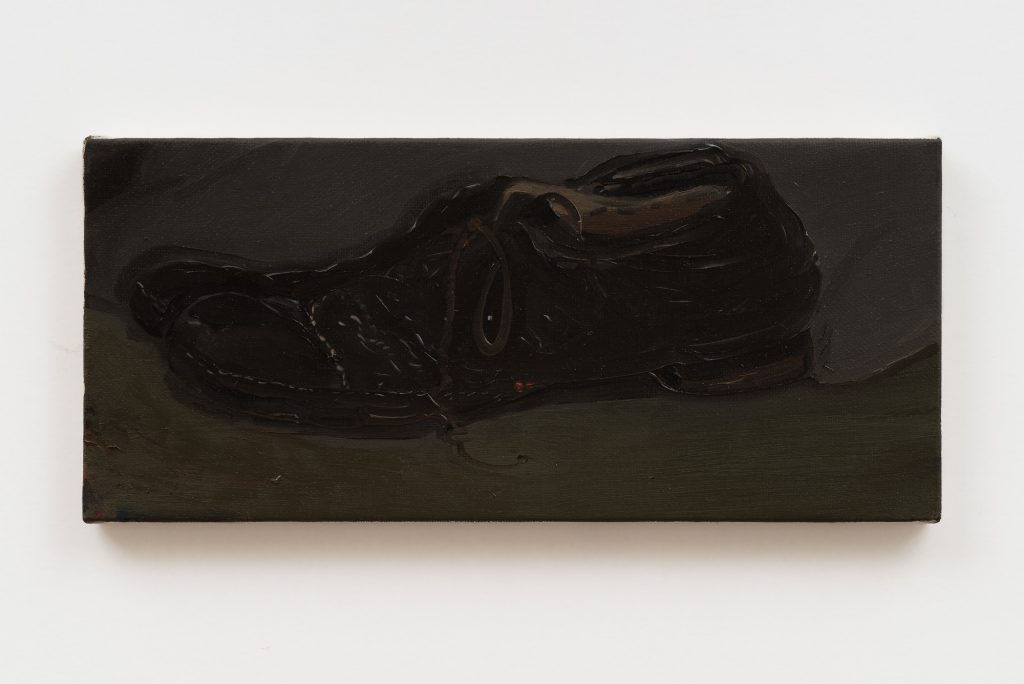 Questa prima parte della mostra in due tempi, in cui sono ora esposte le opere di Pesce Khete e Michele Tocca, inizia a tutti gli effetti con il livello 1, dove una serie di lavori accolgono lo spettatore ingaggiando con esso e con lo spazio, attraverso registri coloristici differenti, un dialogo attorno alla dimensione materiale e materica, a tratti terrosa. Qui infatti trovano posto opere come scarpe sporche o Fango (gelata) di Michele Tocca intervallate da uno dei molteplici Untitled di Pesce Khete, la cui componente segnica rimanda all’esperienza dell’art brut.