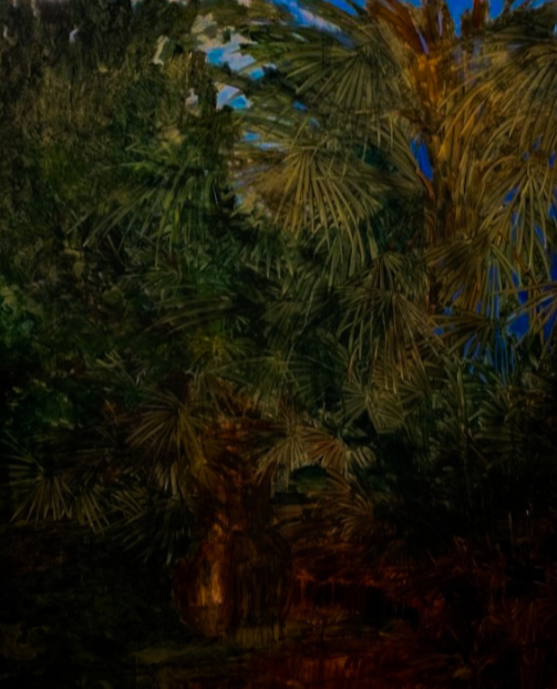 L’indagine dell’artista è caratterizzata da visioni che oscillano tra la realtà e l’immaginario: da una parte esercita il pensiero e dall’altra racconta i luoghi ideali che la circondano. Per Ilaria Simeoni “l’esperienza di trasformare una semplice foglia in una visione tesa a raccontare la realtà̀ della natura coltivata, mi ha insegnato a trasferire nell’elaborato pittorico un luogo ideale che si genera tra la mente ed il pennello che scorre sulla tela, in questo modo esprimo un impulso interiore che mi ha portata, nel tempo, a vedere la natura del giardino come una filosofia di pensiero”.