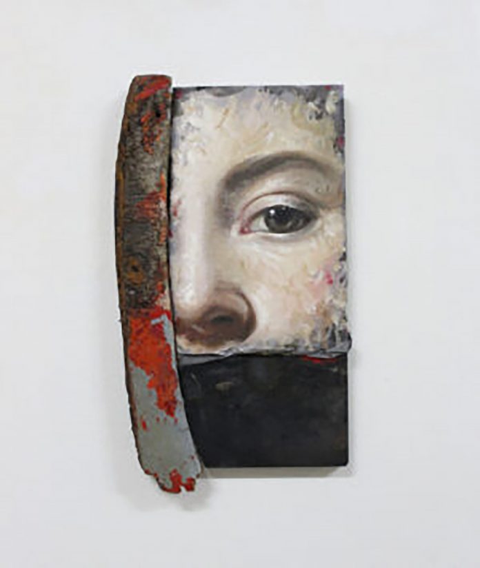 HUMAN dunque, con opere di Francesco Minuti, particolarmente attento alla dimensione esistenziale dell’uomo, artefice del recupero di frammenti delle barche dei migranti, sfasciatesi sulle coste calabre, impregnate di odissee, su cui dipinge volti in cerca di speranze.