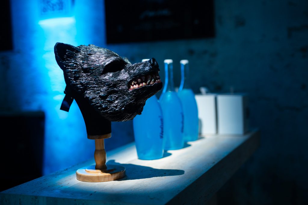 L’esperienza si sviluppa attraverso un percorso immersivo e perturbante, durante il quale visitatore viene proiettato in un ambiente popolato da figure simboliche, uomini-lupo e personaggi enigmatici, situazioni ambigue in equilibrio tra festa, tentazione e ricerca di purezza. Il viaggio sensoriale offerto da Giovanni Motta è costruito con un codice visivo bene riconoscibile, tra il pop e il celestiale, e riesce benissimo nell’intento di mettere in scena una riflessione critica sul desiderio umano di eternità e sulla mercificazione del tempo e della natura. Un elemento simbolico che rappresenta l’ossessione dell’uomo per la permanenza e il controllo del tempo è il drink creato con la misteriosa sostanza che promette di rimanere giovani per sempre. La formula del drink viene ironicamente illustrata in seguito all’attraversamento della stanza degli uomini-lupo, subito dopo essere entrati in contatto con una grande scritta al neon che recita “Time is over, drink eternity”. Una dichiarazione d’intenti che ci conduce verso la seconda parte del progetto.
