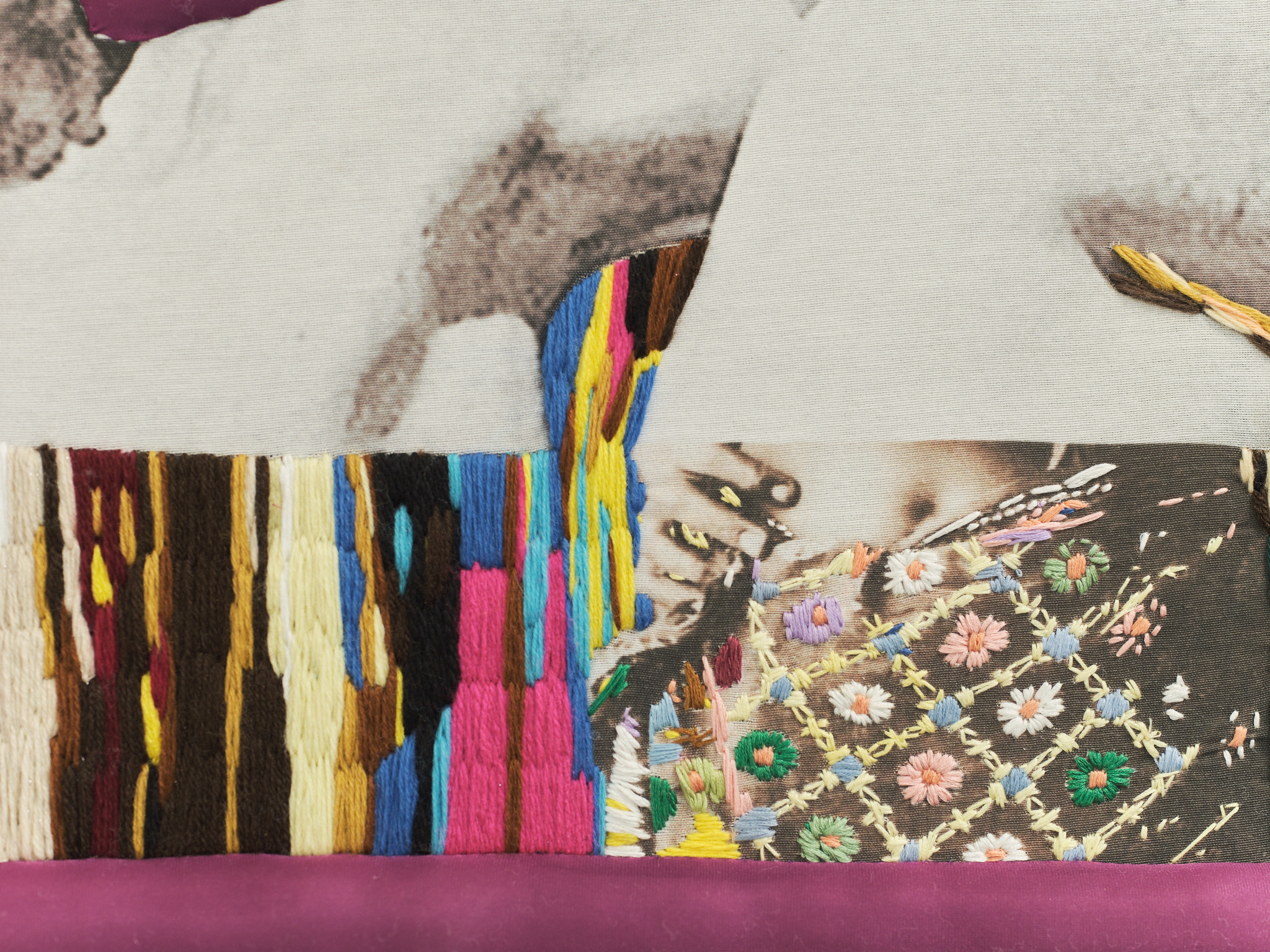 Federico ha raccolto pensieri, il suo immaginario e note storiche fino a realizzare le opere in mostra, unendo il ricamo, tecnica che predilige, alla stampa serigrafica ed altri originali espedienti, pur non tralasciando le note pop che caratterizzano il suo lavoro.