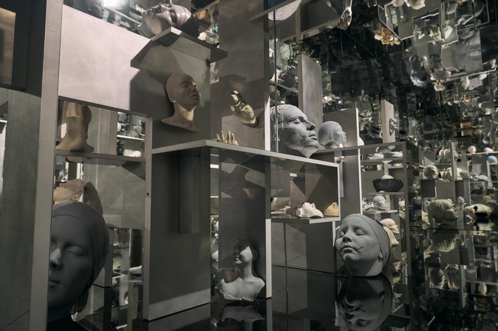 Nel percorso espositivo di Palazzo Bonaparte a Roma, le sue opere dialogano con l’opulenza storica degli ambienti. Dalle celebri sculture in resina o bronzo alle sfere specchianti in acciaio, dai lavori giovanili come grafica pubblicitaria all’installazione Mitologie individuali, presentata per la prima volta proprio a Roma e realizzata in collaborazione con il designer Marcello Panza, ogni opera si inserisce in un fluido continuum tra memoria, materia e identità.