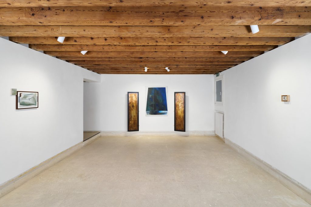 La mostra evita così una progressione narrativa lineare e orchestra piuttosto, secondo il ritmo stesso del pensiero, una mappa instabile in cui oggetti, corpi e immagini si ridefiniscono ininterrottamente a vicenda. La griglia diventa allora la visualizzazione di un processo mentale scandito da compartimenti, pause, intervalli, dove ogni dipinto occupa uno spazio che è insieme contenimento e apertura, come se la pittura avesse bisogno di un’architettura capace di renderne visibile il movimento.