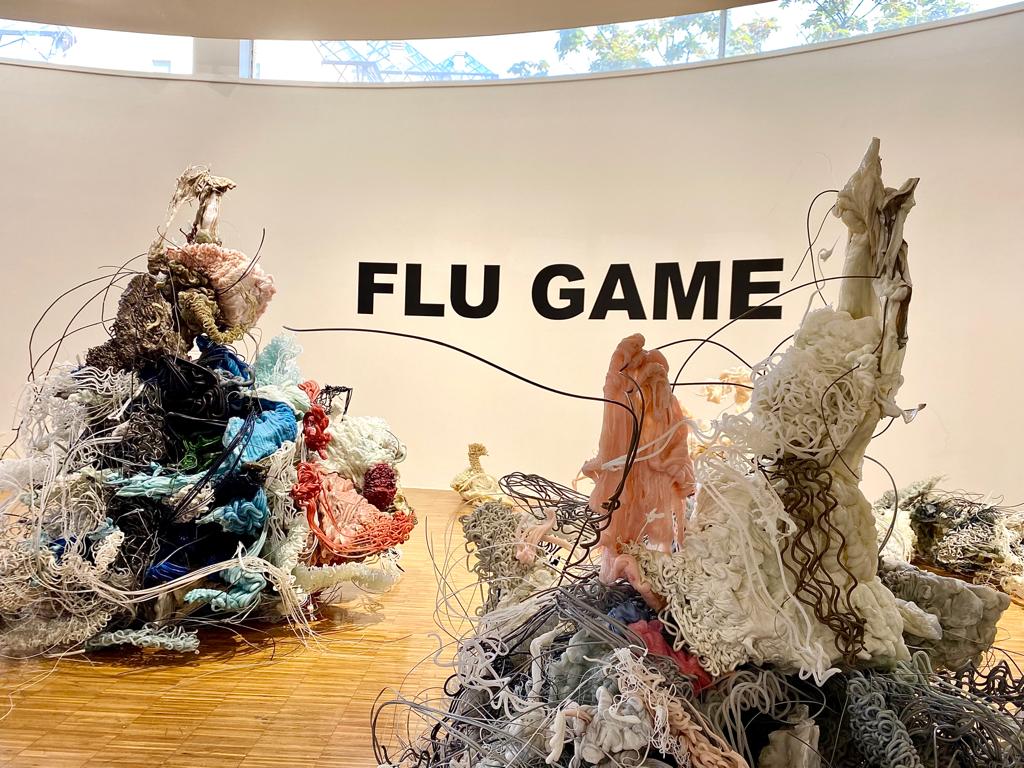 Nel percorso espositivo, l’installazione è contestualizzata da altri dieci lavori dell’artista altrettanto evocativi, che evidenziano la coerenza della ricerca da lui intrapresa – a partire dagli anni Novanta – intorno al rapporto tra essere umano e ambiente, con profondi riferimenti filosofici e scientifici. Ad esempio, in Flu Game (2008), del materiale plastico di scarto compone un paesaggio scultoreo dalle forme organiche, ideato per la mostra Eurasia a cura di Achille Bonito Oliva al Mart di Rovereto. In Not to lose the stars (2023), invece, la bellezza delle stelle è messa a confronto con l’inquinamento luminoso, impalpabile ma diffuso. Per contro, il fuoco simboleggia l’atteggiamento aggressivo dell’essere umano nei confronti di quanto lo circonda, attraverso la neve in fiamme di Over Two Thousand (2007) o in Antagonismus. The Time of the Flood (2020), opera video basata su un ossimoro visivo, tanto potente quanto suggestivo: una fiamma chimica tossica generata dall’artista entra in conflitto con la superficie dell’acqua. Prima che il diluvio, da noi stessi causato, vanifichi ogni tentativo di porvi rimedio e ci travolga.