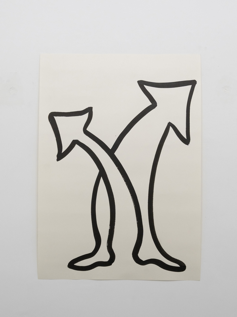 A chiudere e insieme cucire le traiettorie della mostra è Rise and Fall (2015) di Sam Porritt, installazione cinetica che solleva e lascia cadere una sfera in un ciclo continuo. Una metafora tanto semplice quanto precisa: la vita come successione di slanci e cedimenti, rimbalzo tra controllo e abbandono, fallimenti che preparano nuovi equilibri. I disegni dell’artista, fatti di tratti ripetuti in maniera quasi compulsiva, evocano frammenti corporei che appaiono e scompaiono, e che costruiscono per poi distruggere, come se il corpo fosse un’apparizione instabile che brama di essere riconosciuta.