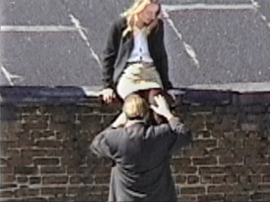 Michel Auder introduce invece una dimensione di osservazione sospesa, capace di trasformare il quotidiano in un teatro silenzioso. Rooftops and Other Scenes (1986-1996) osserva New York dall’alto con la distanza paziente di chi vede senza voler possedere, catturando momenti minimi che diventano frammenti di una coreografia invisibile eppure fluida, continua. L’artista riflette sulla responsabilità dello sguardo, sul confine tra voyeurismo e partecipazione, in un’attenzione che rivela distanza e partecipazione, interrogando il limite etico tra visione e intrusione. In Pain or Pleasure e Red Kiss questa tensione si fa più cruda: intimità e vulnerabilità sono esposte senza filtri, in una narrazione in cui eros e inquietudine si confondono fino a diventare un’unica vibrazione emotiva, rimbalzando dal video ai fotogrammi.