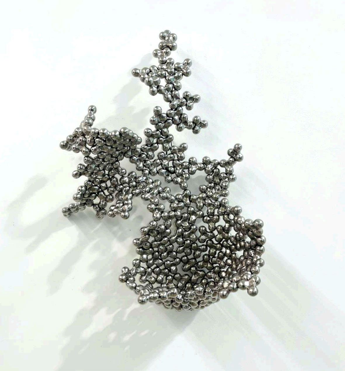Il titolo Sub Limine, “Al confine”, evoca infatti una soglia, un territorio interstiziale tra naturale e artificiale, tra vissuto e immaginato, organico e digitale, memoria storica e proiezione futura, ordine e inquietudine. Ed è proprio in questo ambito che si muovono le opere in mostra. Cecchini, con l’installazione The Developed Seed, riflette sul seme come potenziale, come forma in espansione che unisce natura e astrazione tecnologica. Le sue forme fluidificano la materia, esplorando lo spazio come ecosistema ibrido.