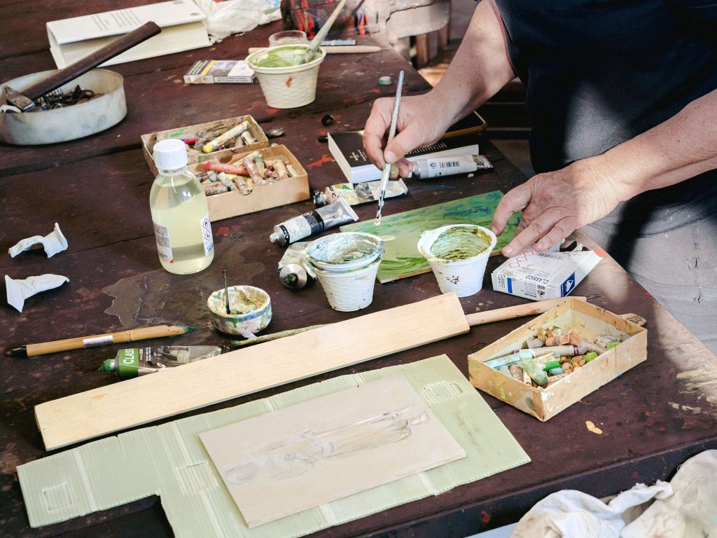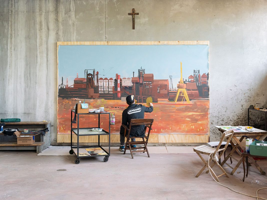 L’interno del capannone che accoglie il visitatore nel suo immenso spazio ha un che di vissuto, le pareti, il pavimento raccontano molto di quel luogo e le opere in esposizione sono qualcosa di meraviglioso. Gli artisti in mostra, fino al 10 luglio, sono: Thomas Braida, Beatrice Meoni, Nazzarena Poli Maramotti, Chris Rocchegiani e Alessandro Roma, che tra maggio e giugno, sono stati ospiti dell’azienda per tre settimane trasformando l’ex officina meccanica nel proprio studio. Alla fine di questo percorso di residenza è nata una collettiva delle opere create in quel lasso di tempo. L’esposizione è visibile fino a luglio, e se non vi fa paura immergervi nel profondo Veneto quello senza traffico per intenderci, fissate una delle vostre tappe proprio a Tezze di Piave nel trevigiano, ne varrà la pena sia per gli spazi sia per le opere e magari accompagnate la vostra visita con un buon bicchiere di vino, lì ci sanno fare in entrambi i casi.