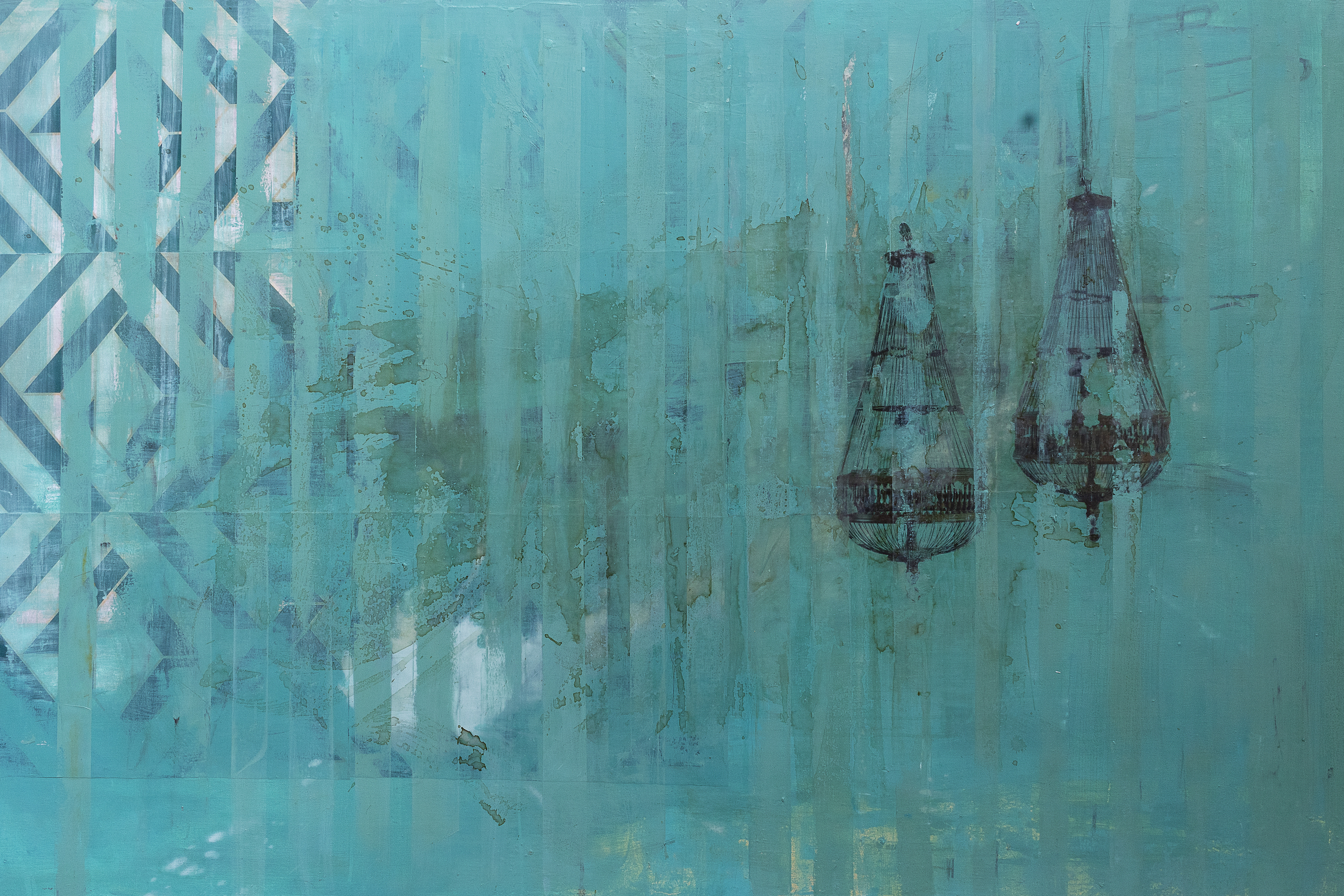 Ma se la rievocazione di uno stato di isolamento e di ‘chiusura’ rispetto al mondo esterno appare evidente in molte tra le opere esposte, è al contempo data la possibilità di cogliere qualche labile segno di un’auspicata proiezione verso una dimensione di ‘apertura’ corrispondente ad un prossimo superamento di questa condizione. Questo è ciò che mostra “Untitled” di Guendalina Salini, dove la natura paesaggistica, osservata pur sempre dall’interno di un’abitazione, costituisce un indizio vitale di qualcosa che va oltre i limiti fisici di una struttura chiusa entro la quale si è costretti. L’opera “Apnée. Interno francese” di Veronica Botticelli rappresenta un ambiente interno, qualificato da una carta da parati dal rievocativo colore azzurro, con la sola presenza di due elementi di arredamento, dei lampadari. Se, da un lato, l’artista ripropone, puntualmente, la claustrofobica dimensione di un’abitazione in cui si è irrimediabilmente immersi, sembrerebbe al contempo rievocare l’idea di un’enorme distesa d’acqua solcata dalle due strutture-lampadari che, anche se solo da lontano, possono rievocare la fisionomia di due enormi imbarcazioni a vela viste dalla prua, entità che, solcando il mare, sono ormai finalmente fuori dalla dimensione angosciante di apnée. Infine, “Tutto il mio amore” di Alessandro Valeri rievoca una condizione di evidente costrizione. La figura femminile che è protagonista dell’opera, distesa su di un piano pavimentale con il volto rivolto verso terra, è raffigurata nell’atto di liberare i polsi, bloccati dietro la schiena dalla stretta morsa di un laccio che li serra. È in atto la lenta e faticosa riemersione dall’abisso di una prigionia fisica e mentale che consentirà di riacquisire una rinnovata condizione esistenziale in cui la ritrovata capacità di respirare diventerà parte essenziale per un ritorno alla vita.