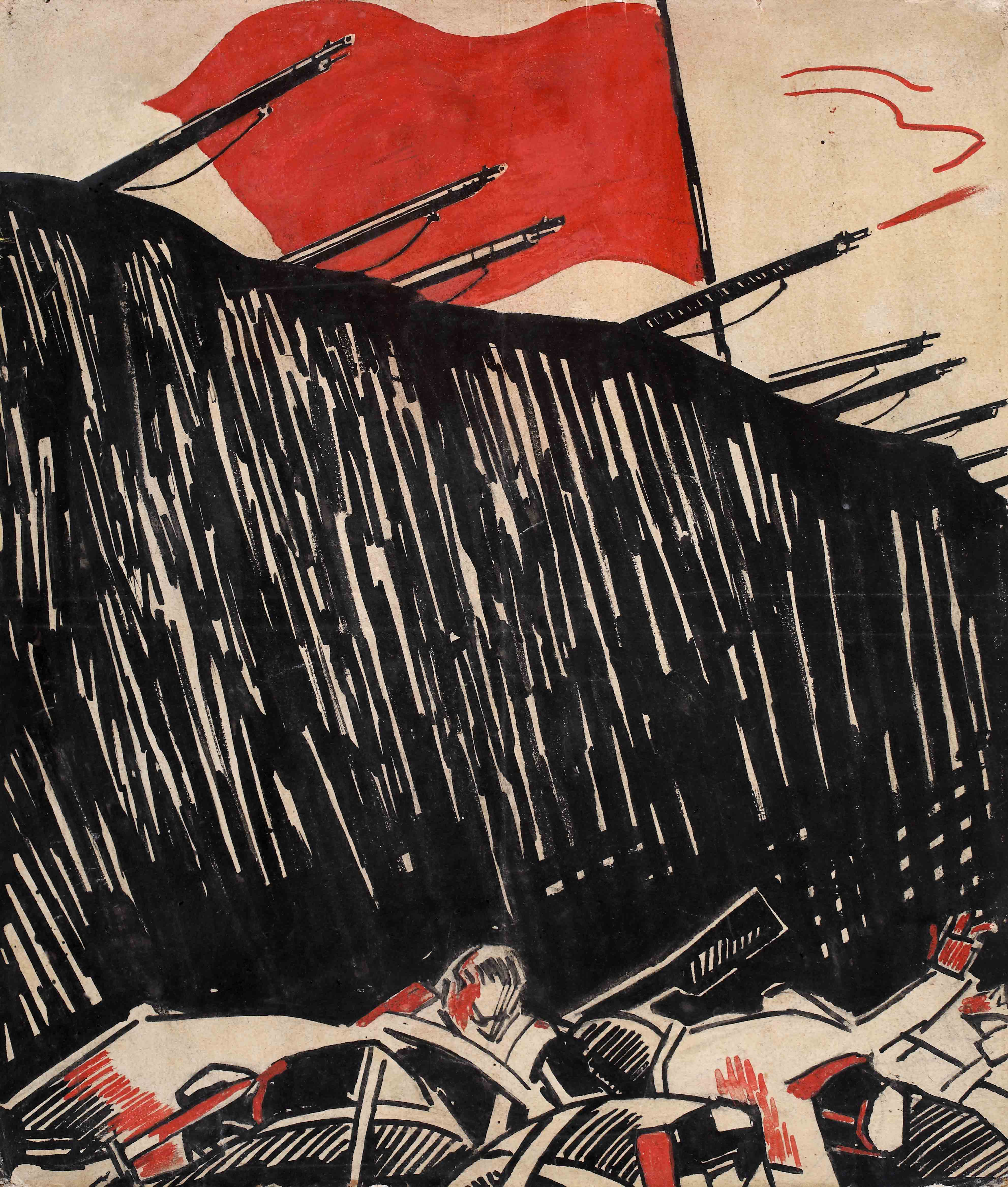 Un impulso altrettanto marcato è percepibile nella trasposizione sulla tela di una sorta di ansia atavica con cui si consuma l’artista davanti alle continue, personali, interpretazioni dei risultati ottenuti negli ambienti artistici d’avanguardia. Una sperimentazione che per quasi dieci anni, dal 1934 al 1943, allontana Mario Sironi dalla pittura di cavalletto, per avvicinarlo all’architettura con le opere murali testimoniate dai bozzetti preparatori per il Palazzo dei Giornali. La Galleria Russo chiude il percorso espositivo di “Mario Sironi. La poetica del Novecento” con opere intrise di una pesante carica di disillusione per i risvolti della politica italiana e pessimismo esistenziale nei confronti della società, rimarcate evidentemente nelle ultime composizioni sironiane ormai prossime ai dettami dell’Informale.