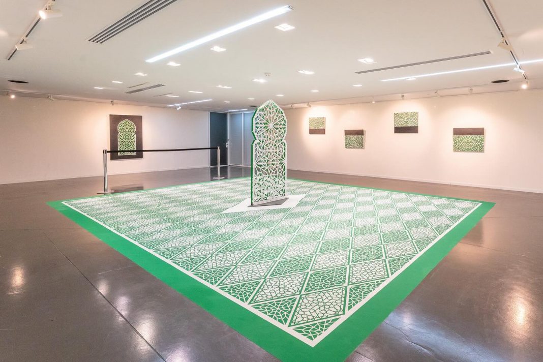 Mosa One, artista di origine egiziana, nato e cresciuto a Roma, esprime il suo essere “cittadino del mondo” sganciandosi da una definizione culturale specifica con cui identificarsi appieno. Questa volontà di aprirsi al mondo e di spaziare tra confini che si sovrappongono è chiaramente riflessa nell’installazione site-specific Half&Half, in cui tradizionali tappeti islamici sajjada, tagliati a metà in modo provocatorio, simboleggiano la volontà di creare un proprio spazio, dove poter avere radici in luoghi diversi e identificarsi con diverse culture.