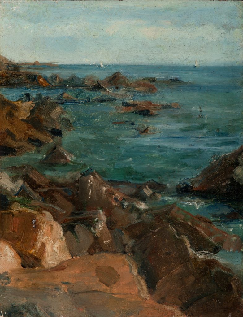 Nell’estate del 1889 Pellizza fece ritorno a Volpedo dove si cimentò nella realizzazione di impressioni di paesaggio con pennellate sommarie e veloci, poi decise di tornare a Bergamo – dopo aver visitato l’Esposizione Universale del 1890 – per riprendere il percorso di crescita e di lavoro in Accademia. Il crescente interesse per la figura umana inserita nell’ambiente e per il lavoro, che nella sua Volpedo si svolgeva essenzialmente all’aperto, incoraggiarono successivamente Pellizza a iscriversi all’Accademia Ligustica di Genova, rinomata scuola di paesaggio. Di questo breve soggiorno ligure, protrattosi per il solo mese di novembre del 1890, restano alcune testimonianze come le marine condotte tra Sturla e Quarto di cui la Pinacoteca conserva una preziosa traccia.