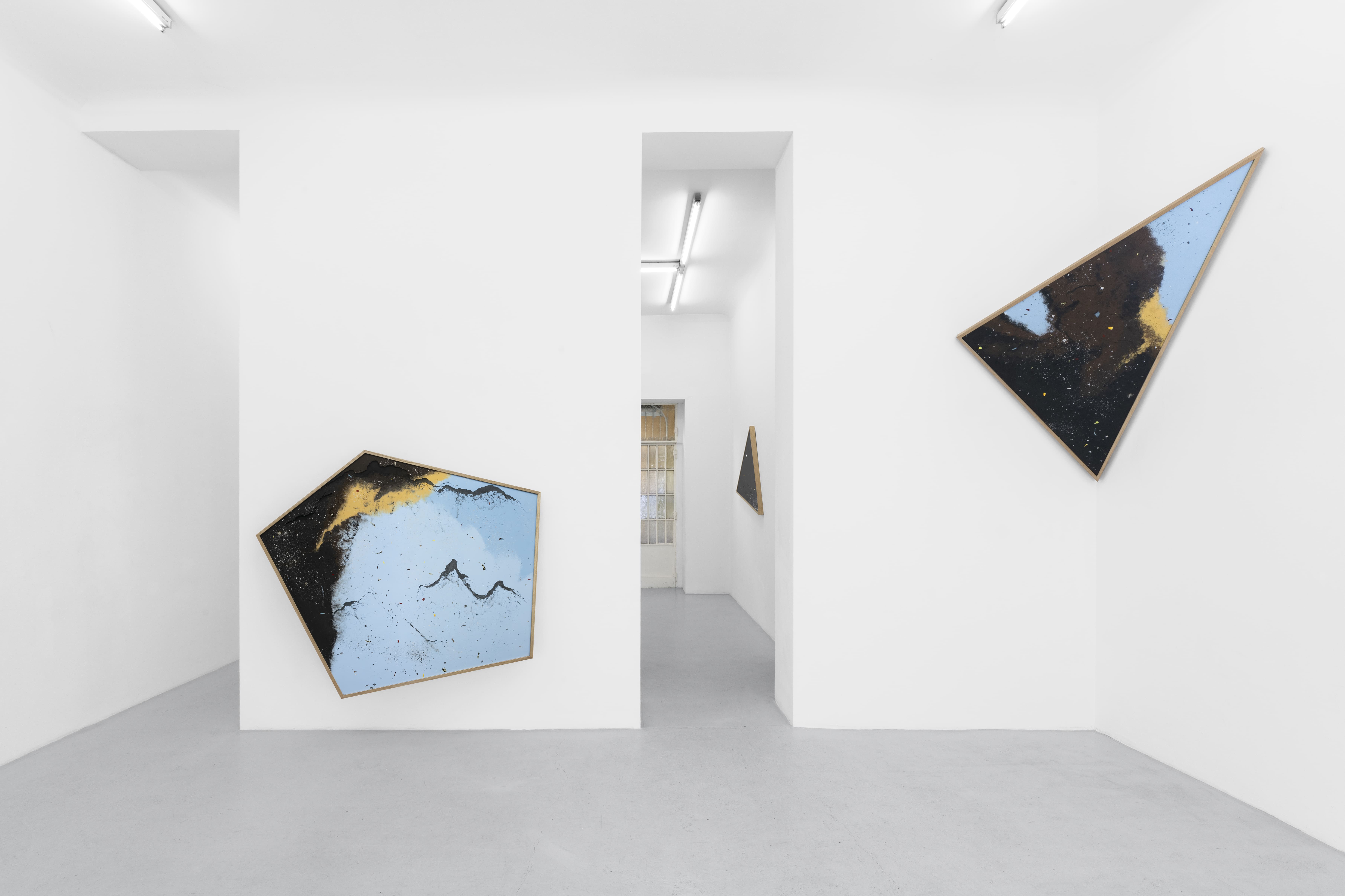 Punto focale della mostra e della pratica di Sophie Ko è il rapporto tra il tempo e la materia, una forza inarrestabile e invincibile. Poggiate sul pavimento e sospese nello spazio di congiunzione tra le pareti, le Geografie Temporali dominano le sale espositive. Rispetto alle precedenti, la nuova serie gioca su formati singolari, spigolosi e appuntiti: «Una stella esplosa o un astro nascente, col cuore luminoso a forma di pentagono e cinque punte nere e azzurre disseminate nello spazio», per citare le parole di Riccardo Venturi, autore del testo critico. Alla ricerca del loro centro perduto, queste forme si rivelano silenziose e leggere, nonostante la loro concreta pesantezza.