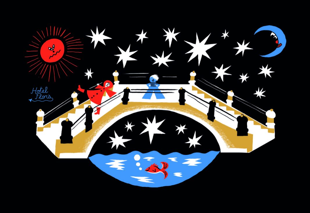 A reinterpretare le pagine più evocative di questa storia è l’illustratrice Sarah Mazzetti, artista bolognese di fama internazionale, che ha tradotto alcune dediche in dieci opere inedite, oniriche e dal gusto vagamente rétro. Le illustrazioni, disseminate nelle stanze di Casa Flora, costruiscono un percorso espositivo che si muove tra intimità e immaginazione, accompagnato da guestbook originali, fotografie d’epoca e materiali d’archivio. Le opere di Sarah Mazzetti saranno successivamente distribuite come cartoline illustrate nel circuito By Romanelli Family e in diversi spazi della città.