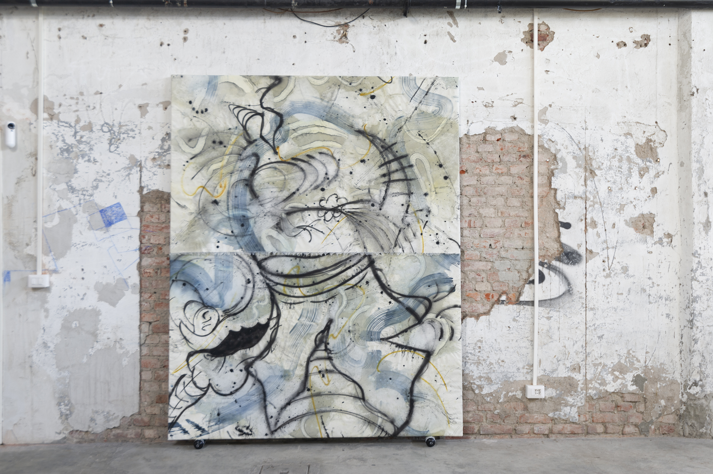 Nato nel 1980, Borgonovo inizia il suo percorso nel mondo dell’arte come assistente per una galleria milanese. L’interazione costante con gli artisti e con il loro lavoro lo spingono a sperimentare e a realizzare le prime opere che spaziano dal collage fino alla rielaborazione digitale delle immagini. A partire dal 2015, però, l’artista compie una significativa transizione abbracciando esclusivamente la pittura come mezzo espressivo. Questo cambio radicale rappresenta un distacco totale dal suo passato, avvicinandosi a una forma d’arte più libera e istintiva. Attraverso l’uso di smalti ampiamente diluiti e spray, abbandona la precisione delle linee grafiche, sostituendo i colori vivaci con tonalità più smorzate e prive di spessore materico.