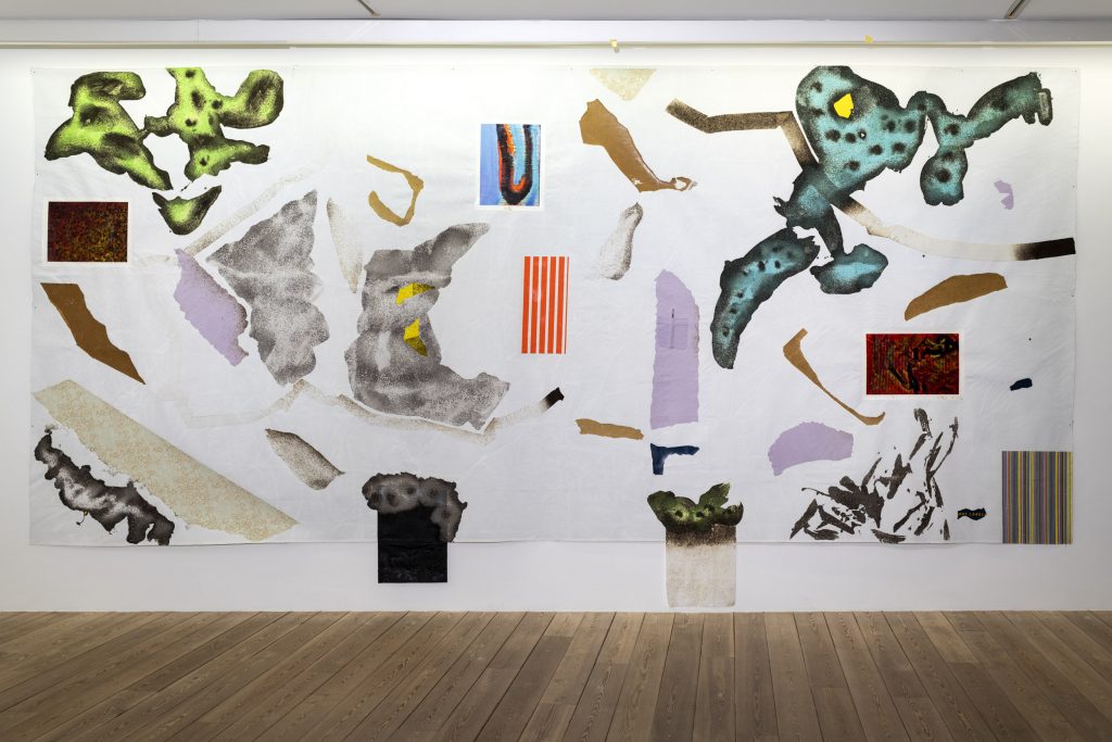 La mostra si apre al piano superiore con Multiplicity of modes: developing the underdeveloped di Binta Diaw, artista italiana di origine senegalese. Protagonisti di questa nuova produzione sono il carcadè e dei tessuti ritenuti pregiati in Senegal e Africa occidentale, utilizzati durante i matrimoni e i battesimi. Bevanda originaria dall’Africa orientale, il carcadè divenne “prodotto coloniale” nel periodo dell’Italia fascista e da quel momento chiamato “tè degli italiani” per opporlo politicamente all’uso del tè britannico. Le stoffe lussuose macchiate di carcadè evocano il sangue che troppo spesso ha caratterizzato il contatto tra i due continenti.