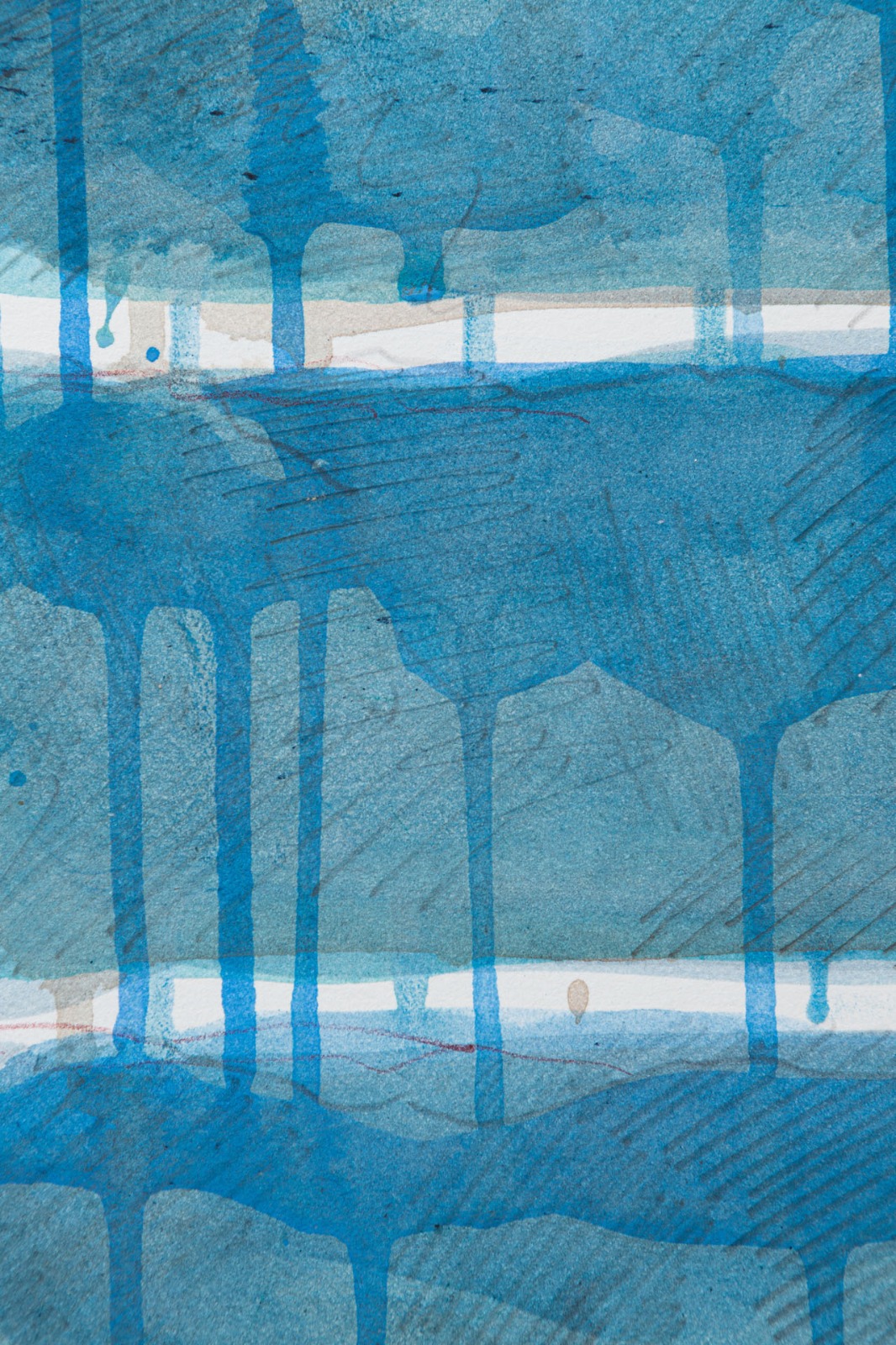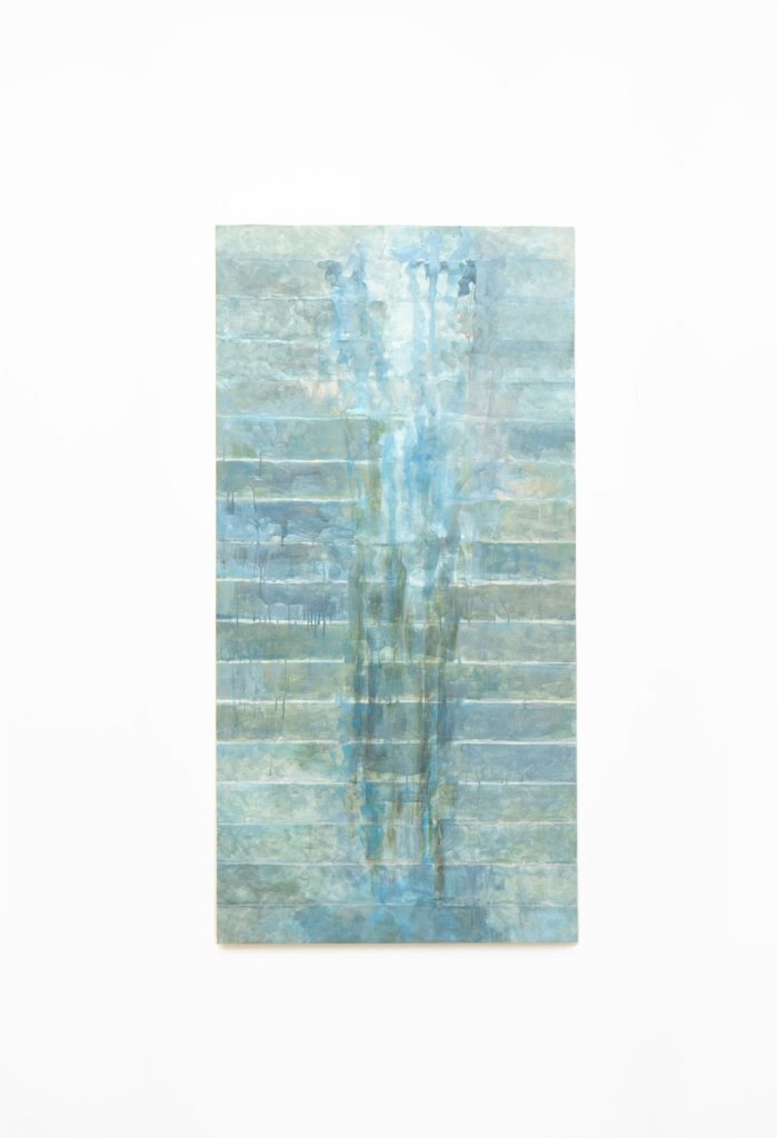 Il percorso espositivo di “Inner Landscapes” segue le diverse fasi dell’opera di Nancy Genn: dalla carte d’autore tridimensionali degli inizi, alle rare vetrografie alle più recenti opere di tecnica mista, dimostrando come è stata in grado di dominare con uguale maestria le diverse tecniche artistiche. Il medium privilegiato rimane però la carta: con il solo precedente di Rauschenberg, Genn è tra le prime a utilizzare questo materiale per la creazione artistica e a sviluppare tecniche pionieristiche per il suo impiego. In particolare, nel 1979 vince una borsa di studio in Giappone, dove ha la possibilità di entrare a contatto con i produttori locali e apprenderne le tecniche di riproduzione, che farà poi convergere in quello che è stato ribattezzato il “metodo Genn”, una sua originale tecnica di strappo. La carta, realizzata a mano dalla stessa artista, perde la sua funzione di mero supporto e da una dimensione piatta passa alla tridimensionalità, come si può osservare in Saratoga 27 (1985). Sono poi presenti alcune opere del periodo romano dell’artista, caratterizzate dall’intreccio di piani di visione multipli e asimmetrici e colori che restituiscono i tramonti romani sulle architetture della città. La stessa cura per la realizzazione artigianale e audacia nella sperimentazione sono evidenti nelle opere mixed-media a matita e caseina di più recente realizzazione, come la serie Tidelines e The Shape of the Water, che mediante un ben calibrato impianto compositivo e una pacata tavolozza di tinte, invitano a un approccio di tipo contemplativo.