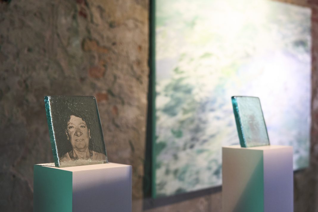 Un processo fotografico unico che rispecchia a suo modo la difficoltà del lavoro di queste maestre merlettaie. Le fotografie sono infatti create utilizzando la tecnica della Fotografia al Collodio Umido, attraverso la quale crea ritratti impressi direttamente su lastre di vetro di Murano, realizzate a mano appositamente per le sue opere. Il colore delle lastre di vetro – Verde Laguna – è del tutto intenzionale: rimanda non solo alla sfumatura dell’acqua della laguna veneziana, ma anche alla carta verde, il foglio di carta utilizzato dalle merlettaie durante la lavorazione dei merletti, assieme a quello giallo della carta paglia.
