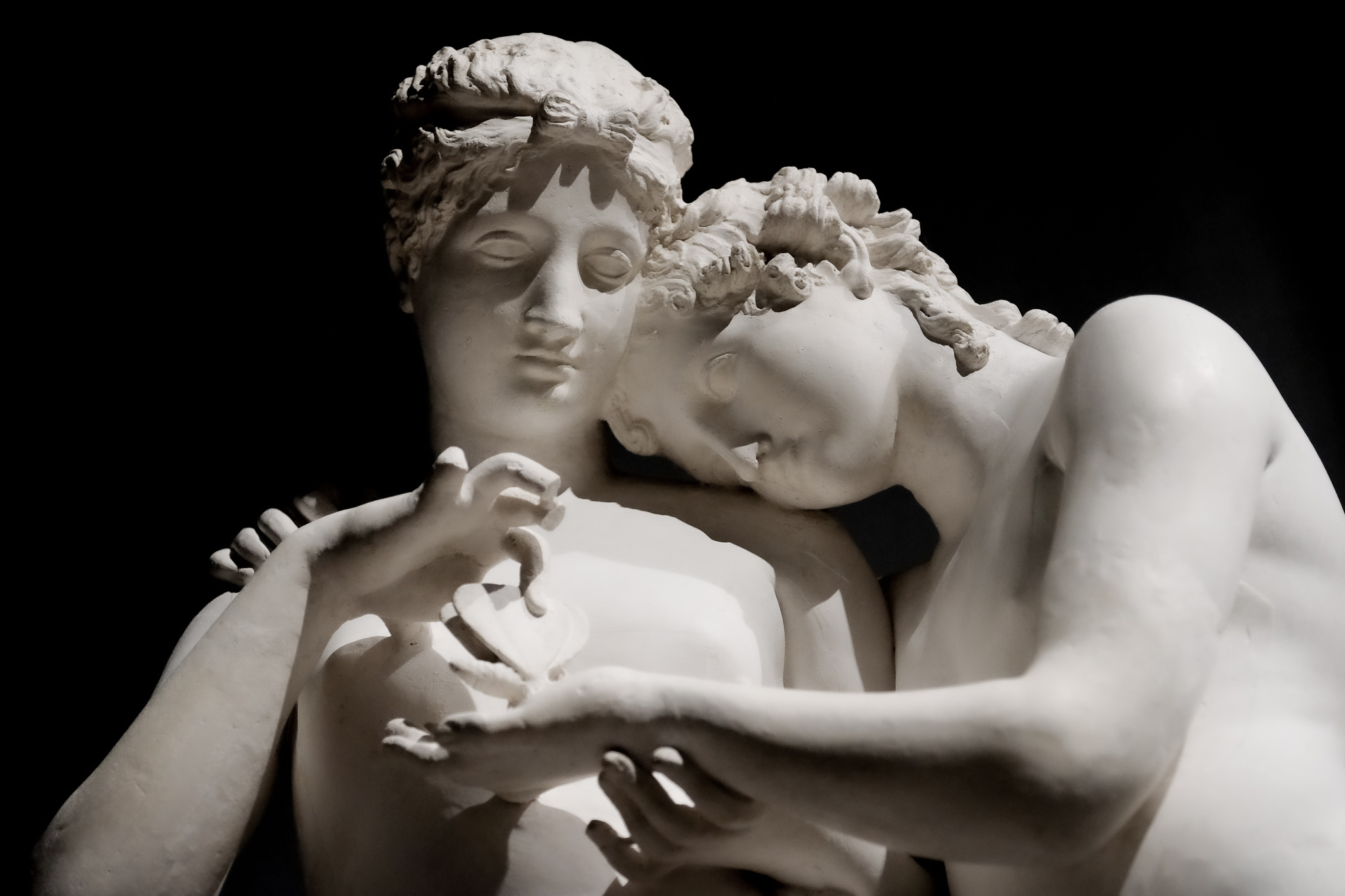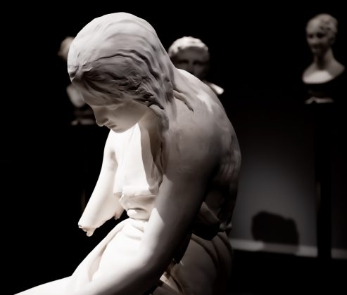 È ancora possibile che oggi uno scultore restituisca tanto ardore, candore, purezza, e carne? I nostri contemporanei, da Jago a Vezzoli, sanno portare questo in dote? Ma poi, soprattutto nella mostra di Bassano c’è lei, la Maddalena che s’abbandona tra i sensi. Non è un caso se il poeta John Keats di stanza a Roma nel secolo del Gran Tour, abbia dedicato un’ode incantevole dopo aver visto la scultura di “Amore e Psiche giacenti” commissionata da Campbell al grande artista Antonio Canova.