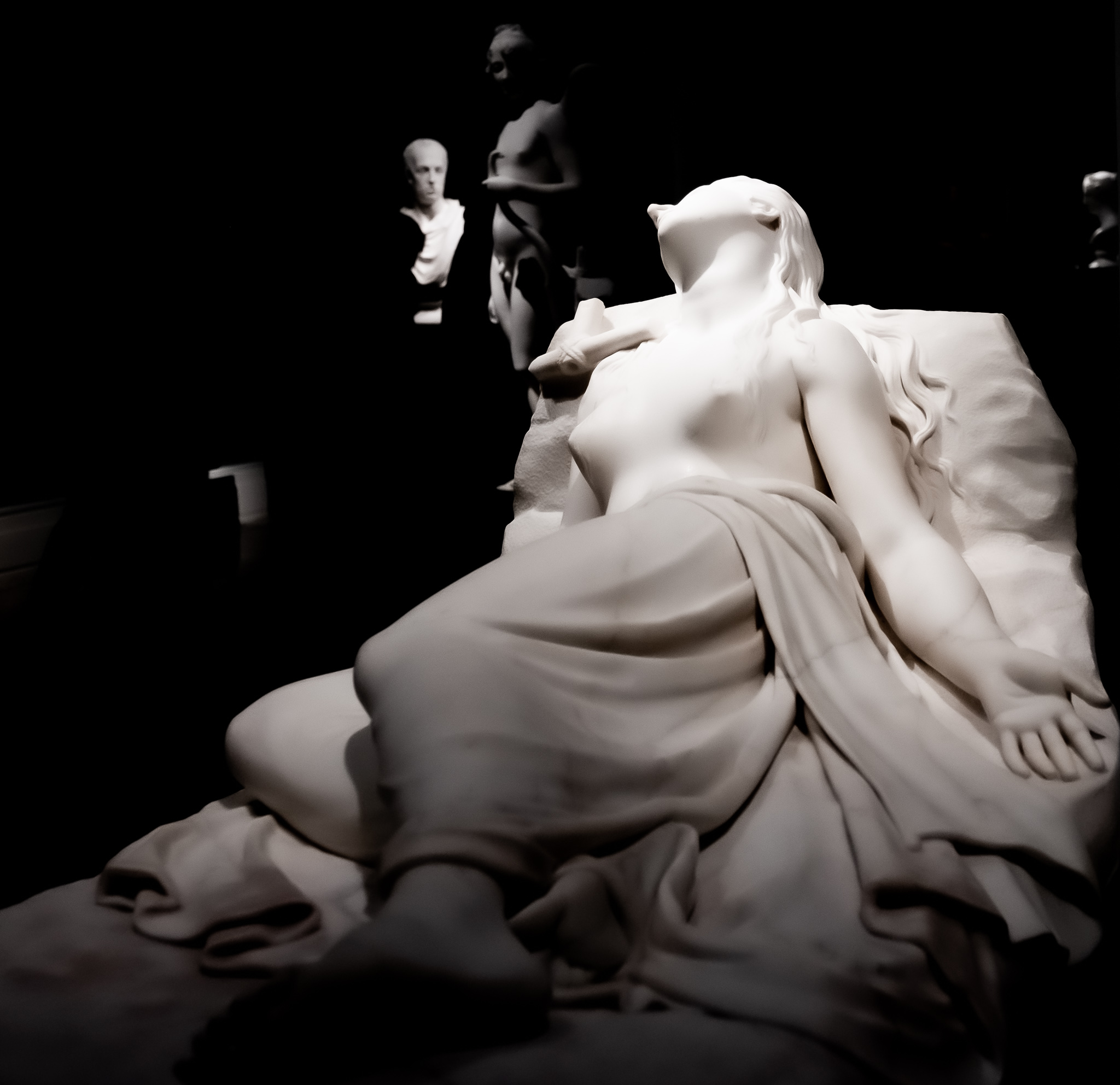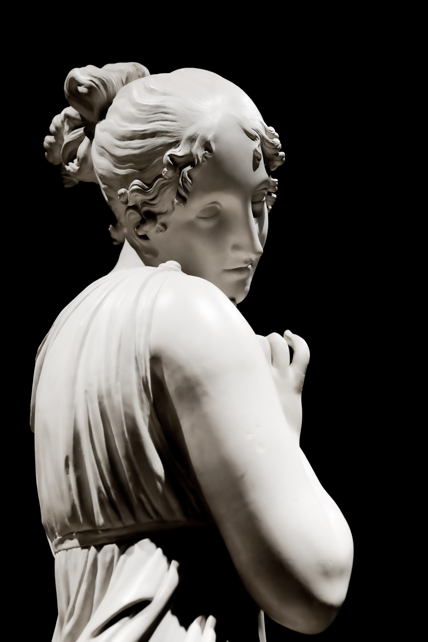 Canova, com’è noto, lasciava emergere il procedimento del suo lavoro e ciò è evidente anche dai punti di repere con cui molte sculture sono concepite, o nella leggera polvere di marmo rosato che dopo due secoli ancora trasfonde d’incanto le sale del museo di Bassano. Perché ciò che è eterno nell’opera di Canova è l’essenza dell’antico reso umano. Pensiamo alla curva dei fianchi della Danzatrice o al dolce sonno sulle palpebre di Endimione.