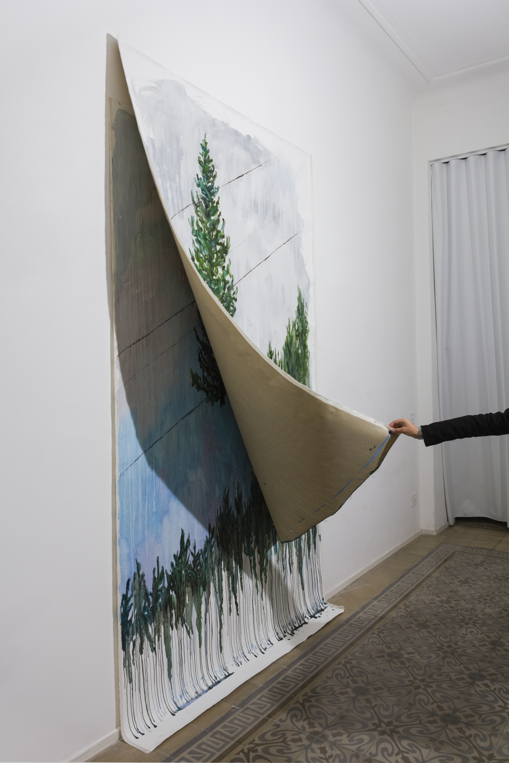 I lavori di Isabella Pers in mostra, ha ricordato aA29 Project Room «interpretano il cambiamento climatico attraverso il linguaggio dell’acqua e la connessione di situazioni fisicamente molto distanti tra loro, ma dalle sorti simili: da un lato gli atolli paradisiaci di Kiribati nell’Oceano Pacifico che subiscono gli effetti di un repentino innalzamento del livello del mare e dall’altro il nord-est Italia, colpito violentemente dalla tempesta Vaia nell’ottobre 2018 che ha distrutto decine di migliaia di ettari di foreste alpine. Le opere raccontano di un tempo che non è più in grado di riallacciarsi al suo ciclico eterno ritorno, ma che prosegue linearmente, senza controllo, attraversando geografie lontane e quotidianità senza coscienza, fino all’immagine tanto impossibile quanto reale, dove “l’albero è capovolto, la radice è nell’aria” (Pierluigi Cappello, Piove)».